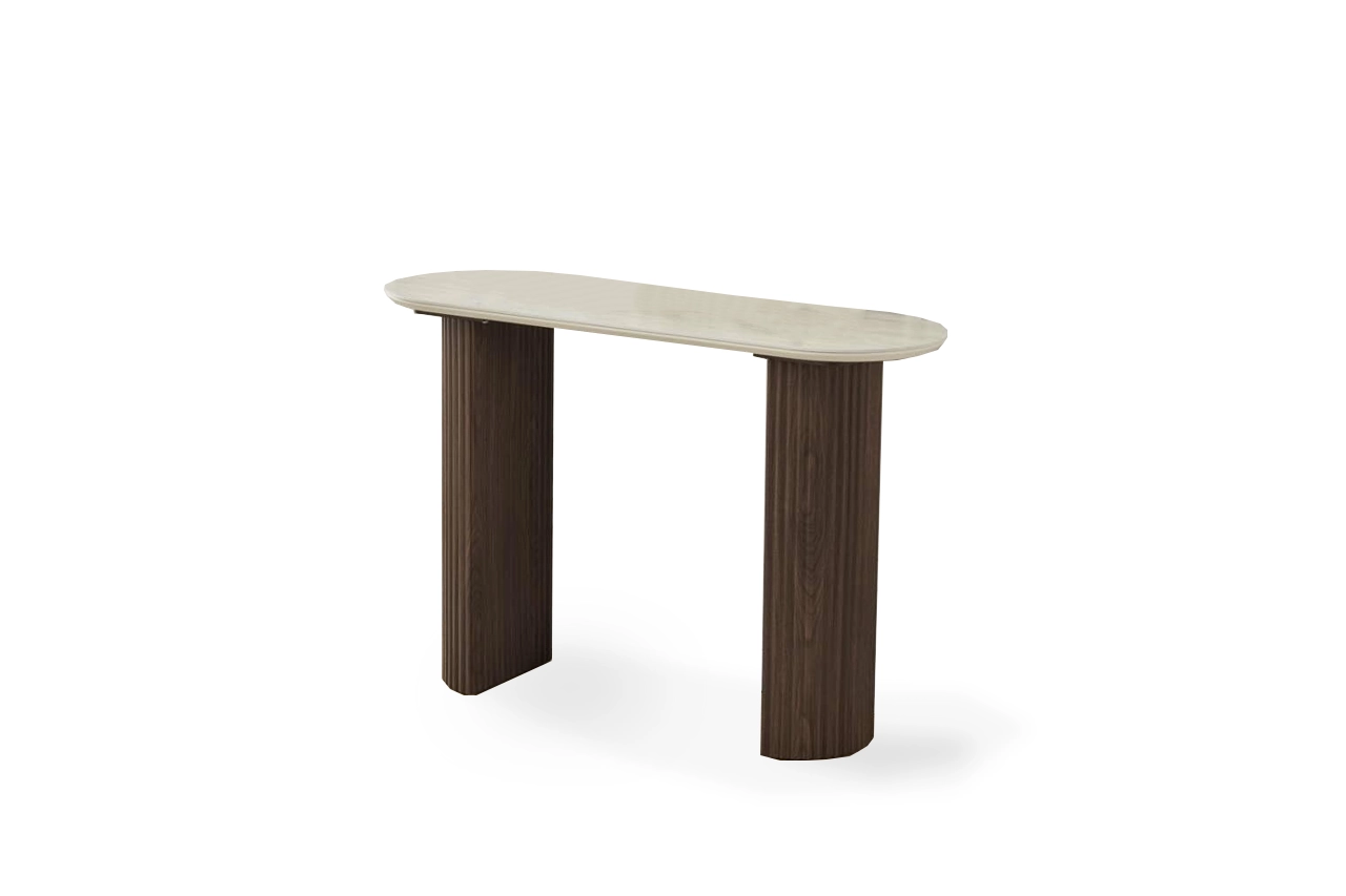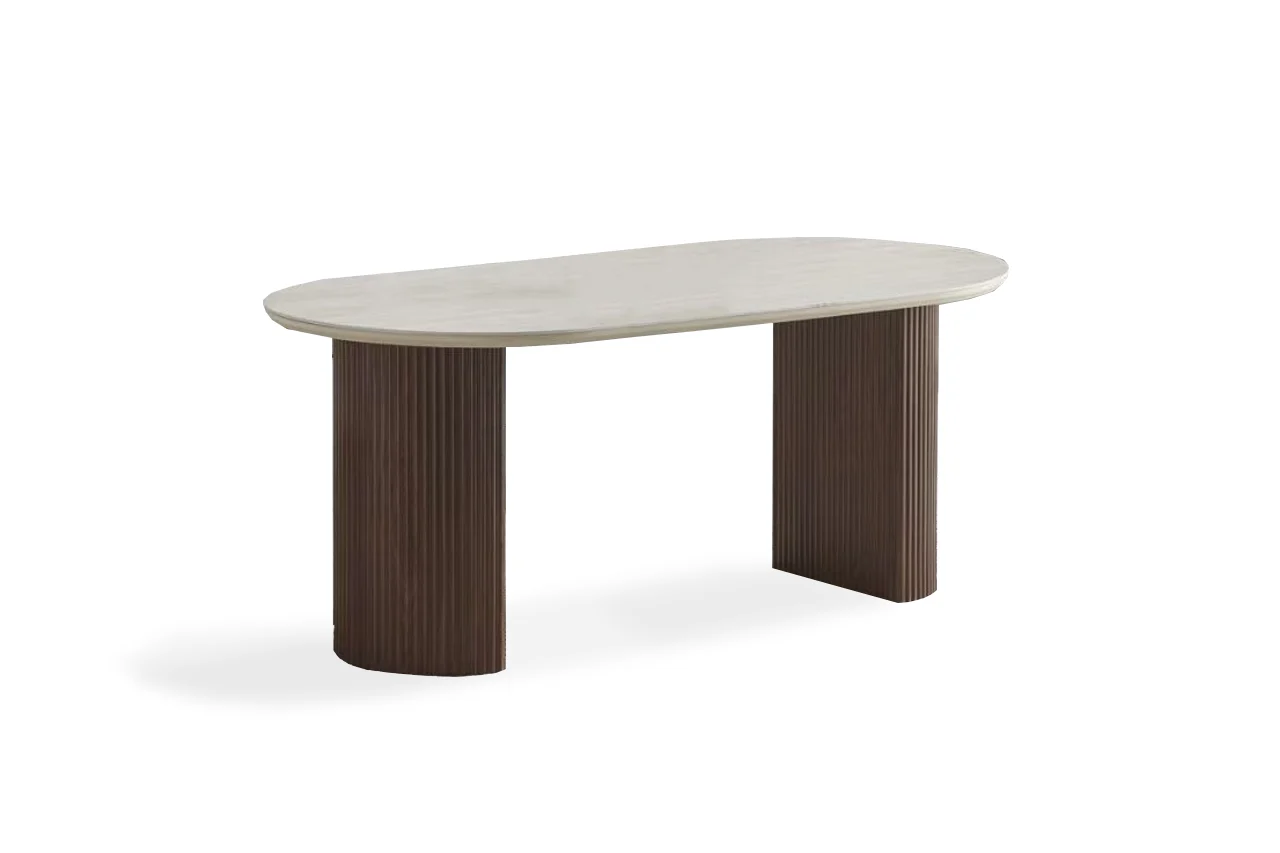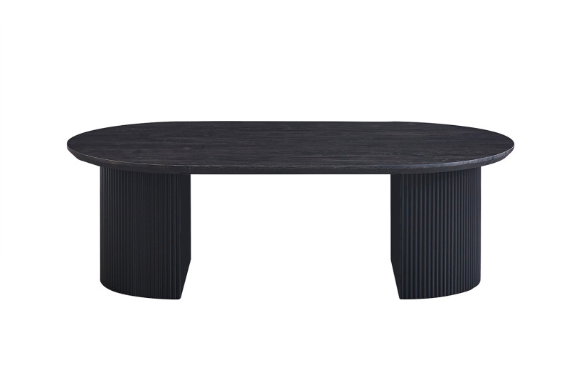 Table basse ovale en effet bois brun foncé