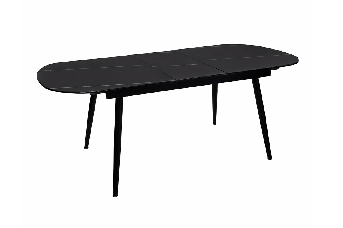 (1 avis)Table à manger extensible en verre noir effet marbre
