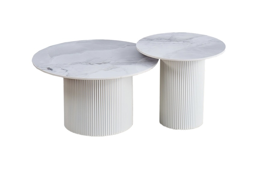 (1 avis)Table à manger ronde en céramique et travertin