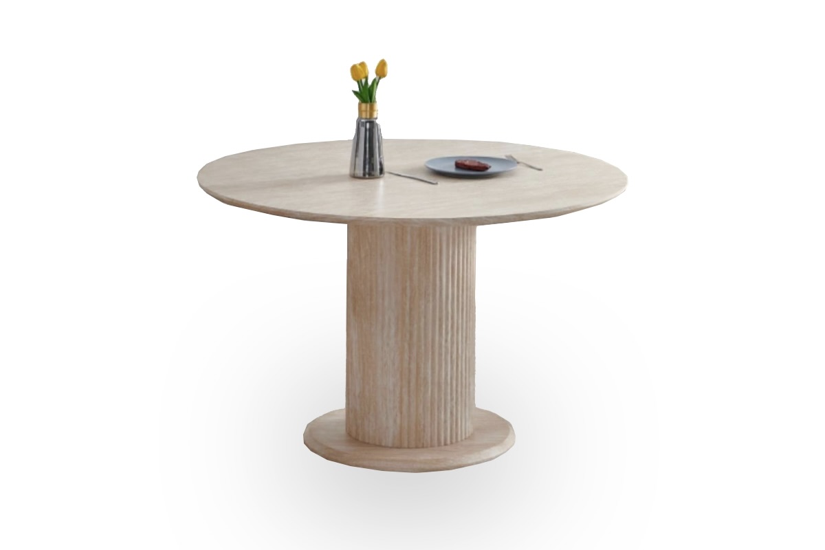 Table à manger en effet travertin ronde moderne
