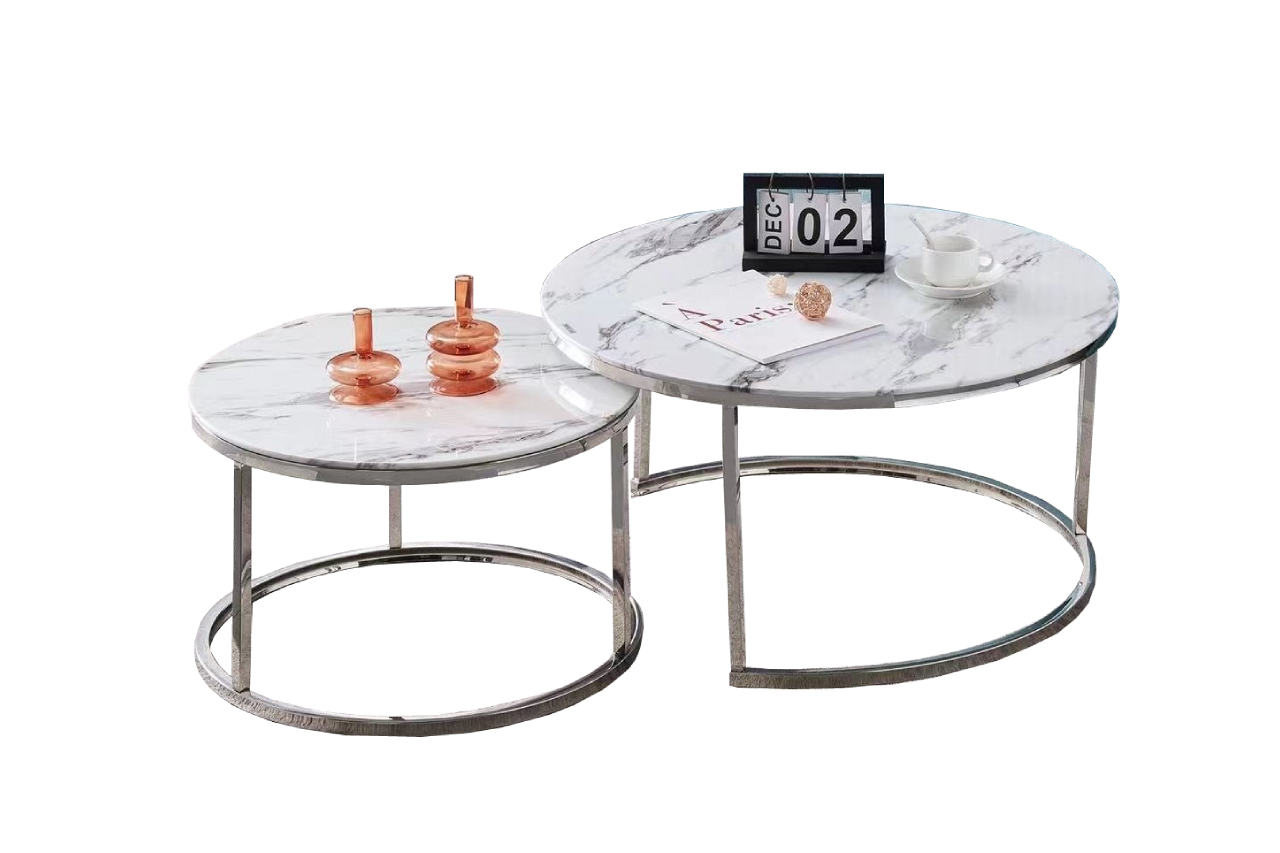 Tables basses gigognes argenté couleur marbre blanc gris ronde