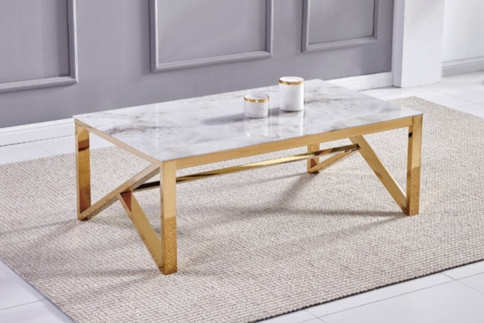 Table basse en couleur marbre et acier inoxydable