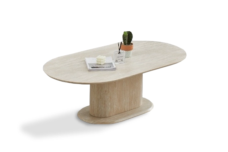(1 avis)Table ovale en céramique effet noyer et travertin