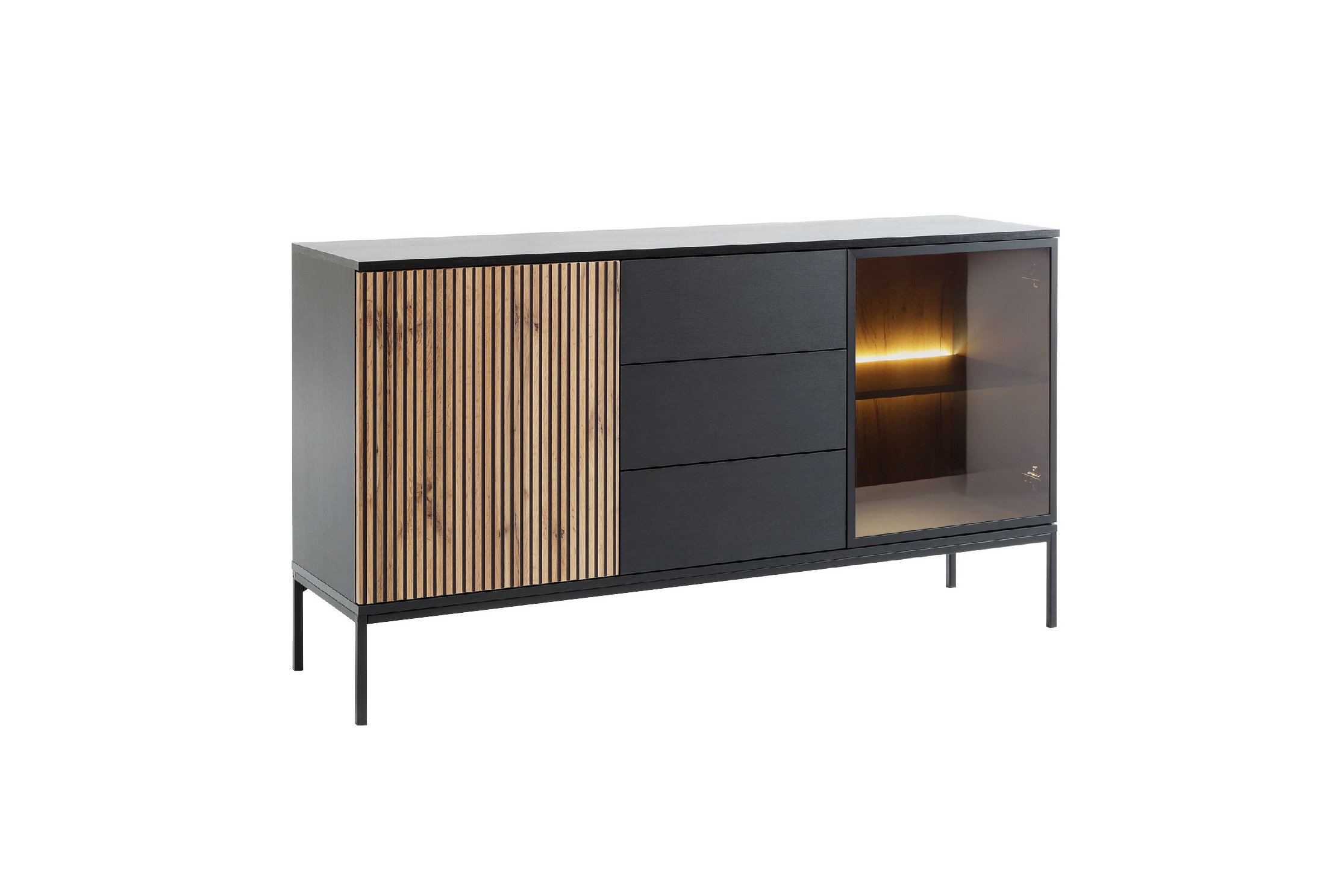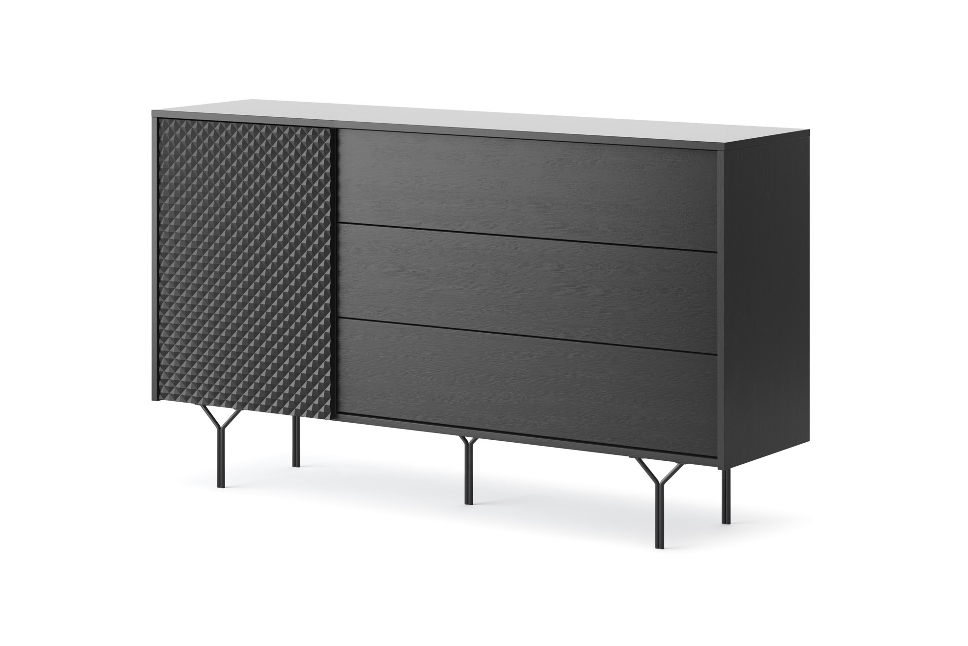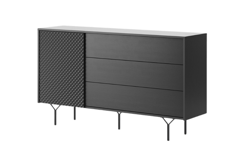 (1 avis)Bahut en bois noir 1 porte 3 tiroirs