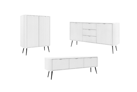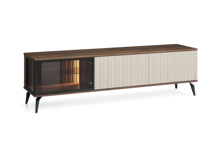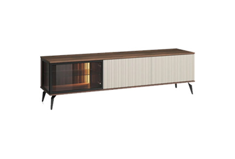 (1 avis)Meuble TV 3 portes en effet noyer et blanc