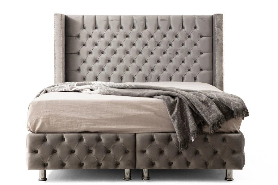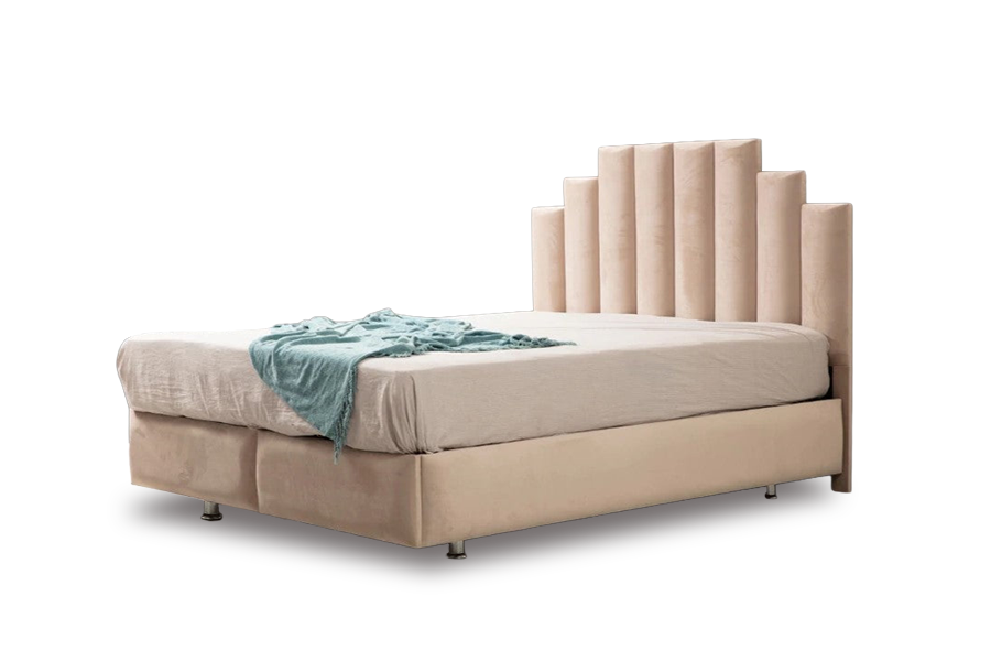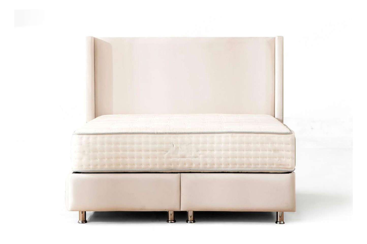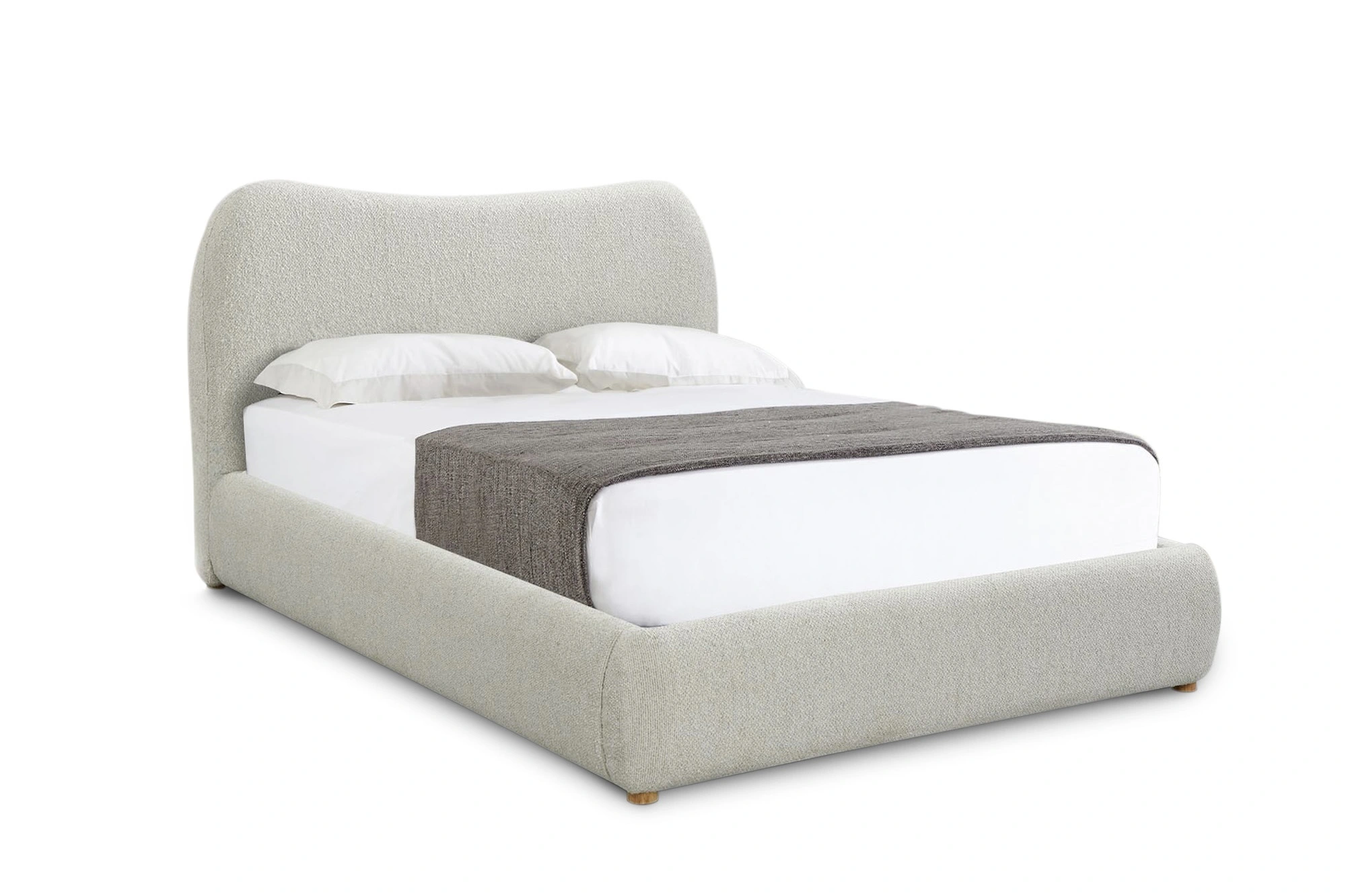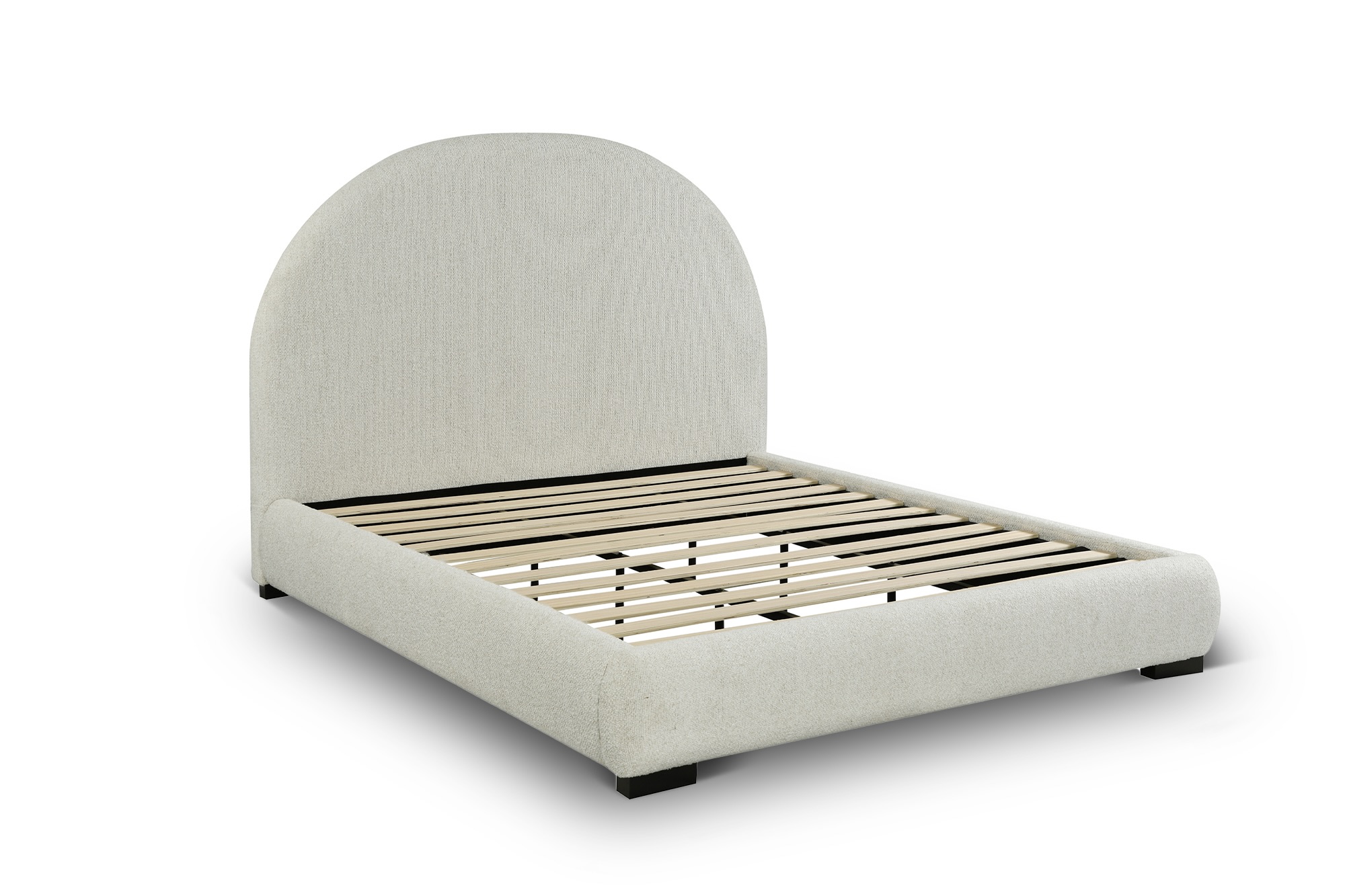 Lit avec sommier en tissu effet peau de mouton beige écru