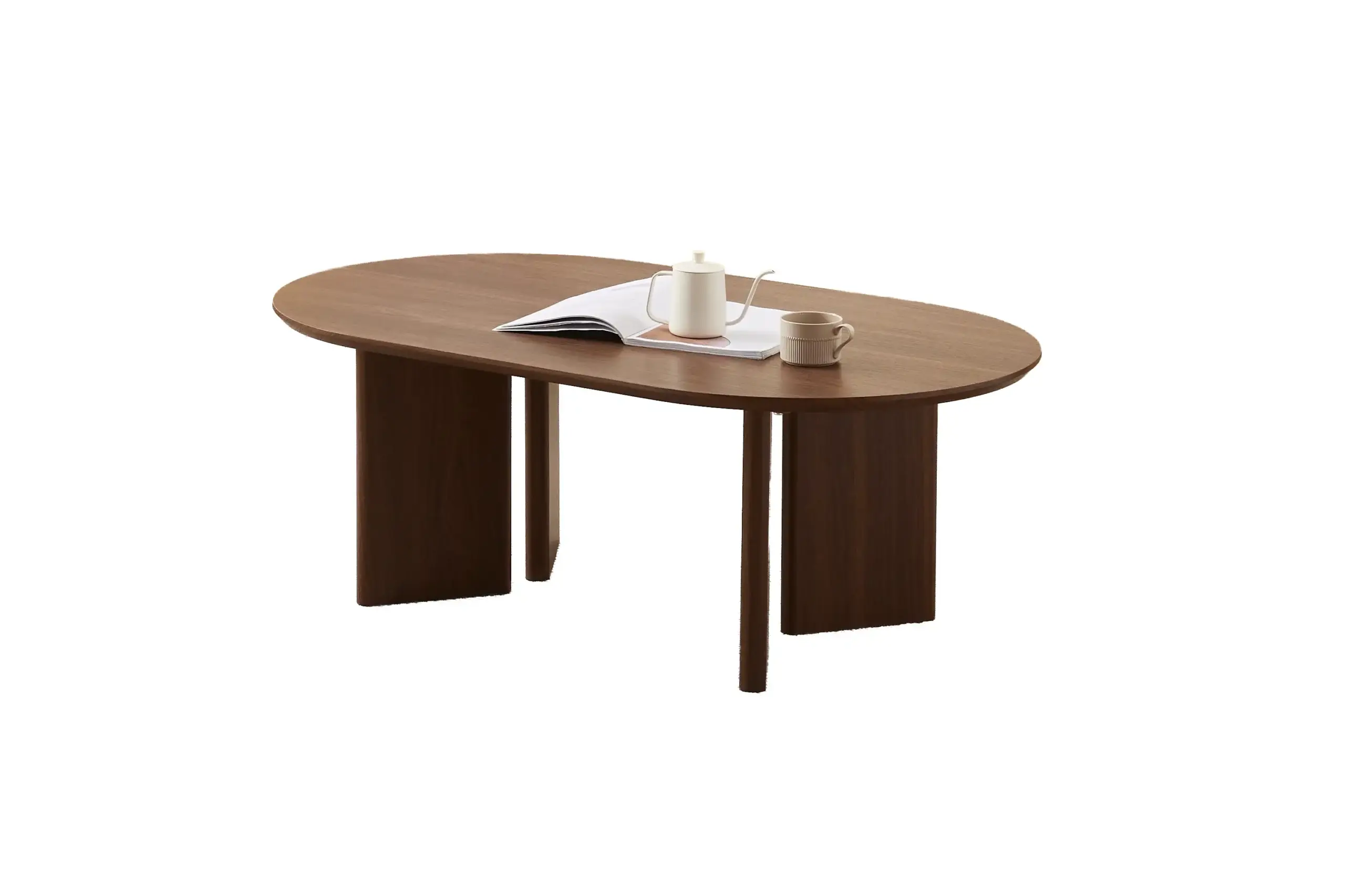 (1 avis)Table ovale en céramique effet noyer et travertin