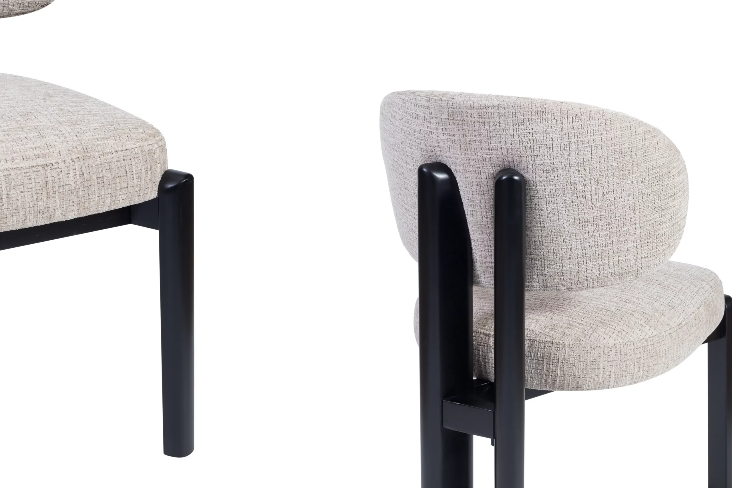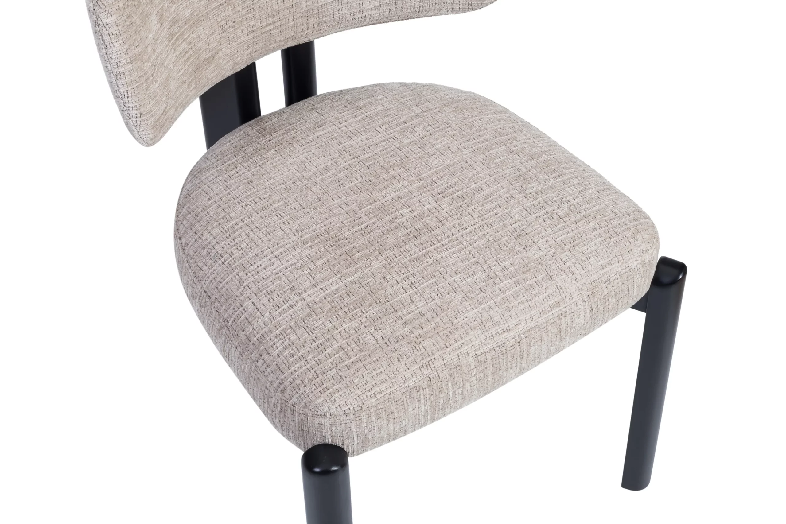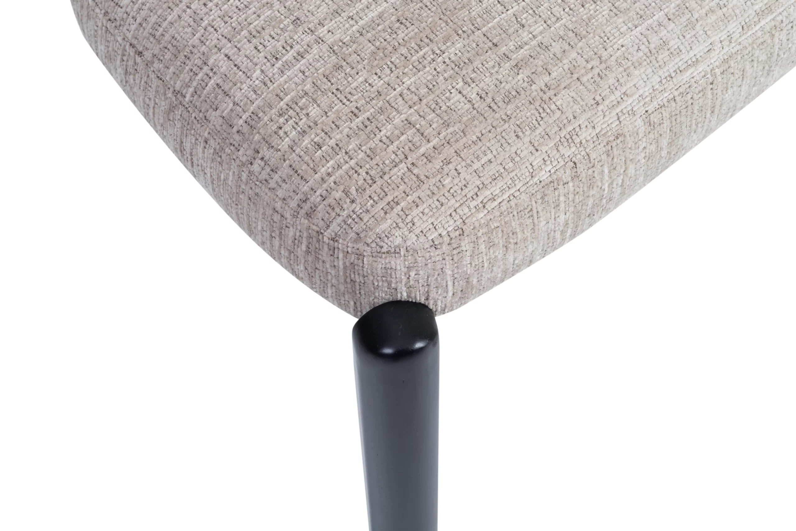 - Revêtement en tissu : Son assise et son dossier sont recouverts d’un tissu texturé couleur grege, apportant une touche chaleureuse et élégante.