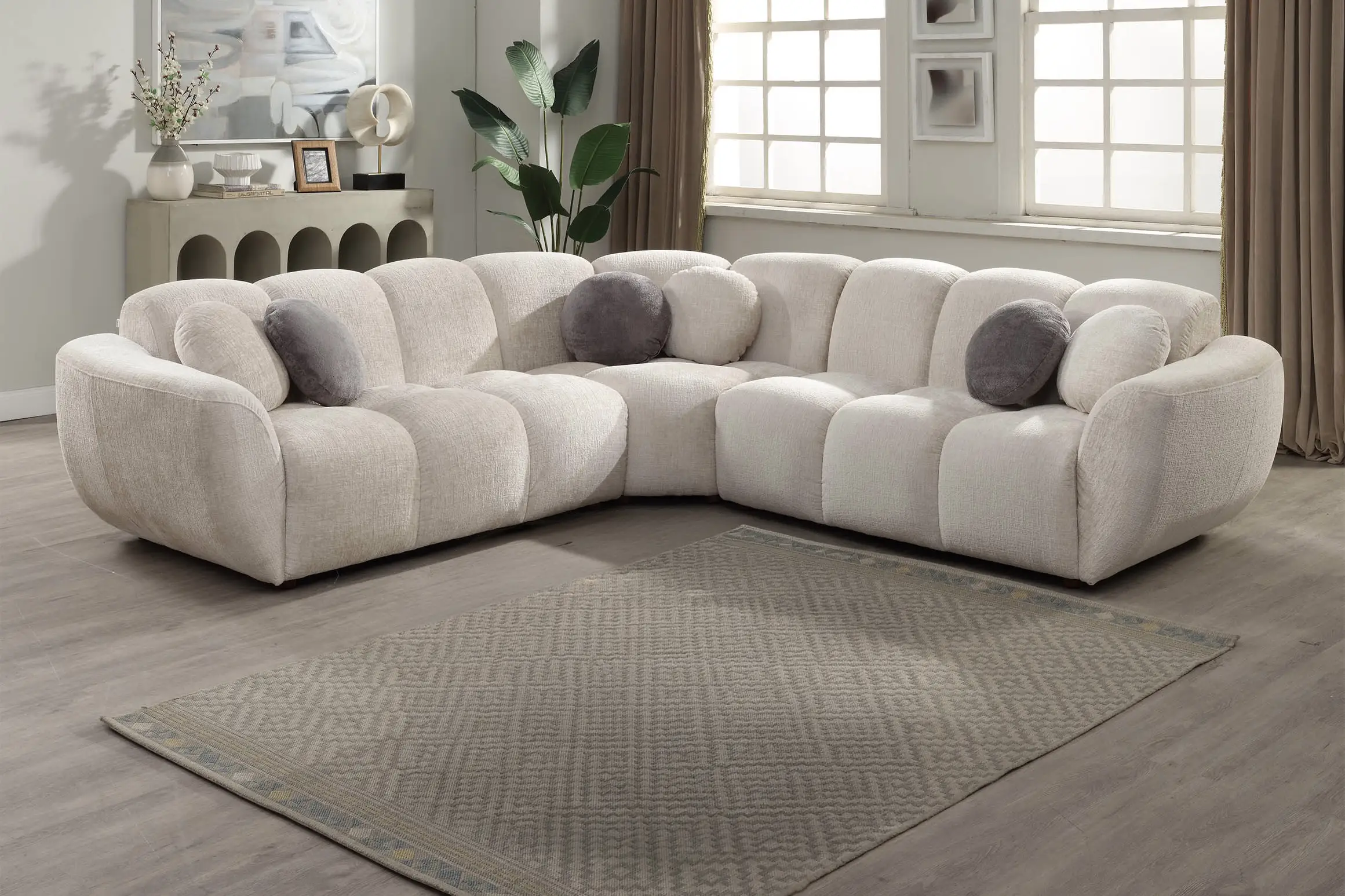 6 coussins ronds offerts (3 gris / 3 blancs)