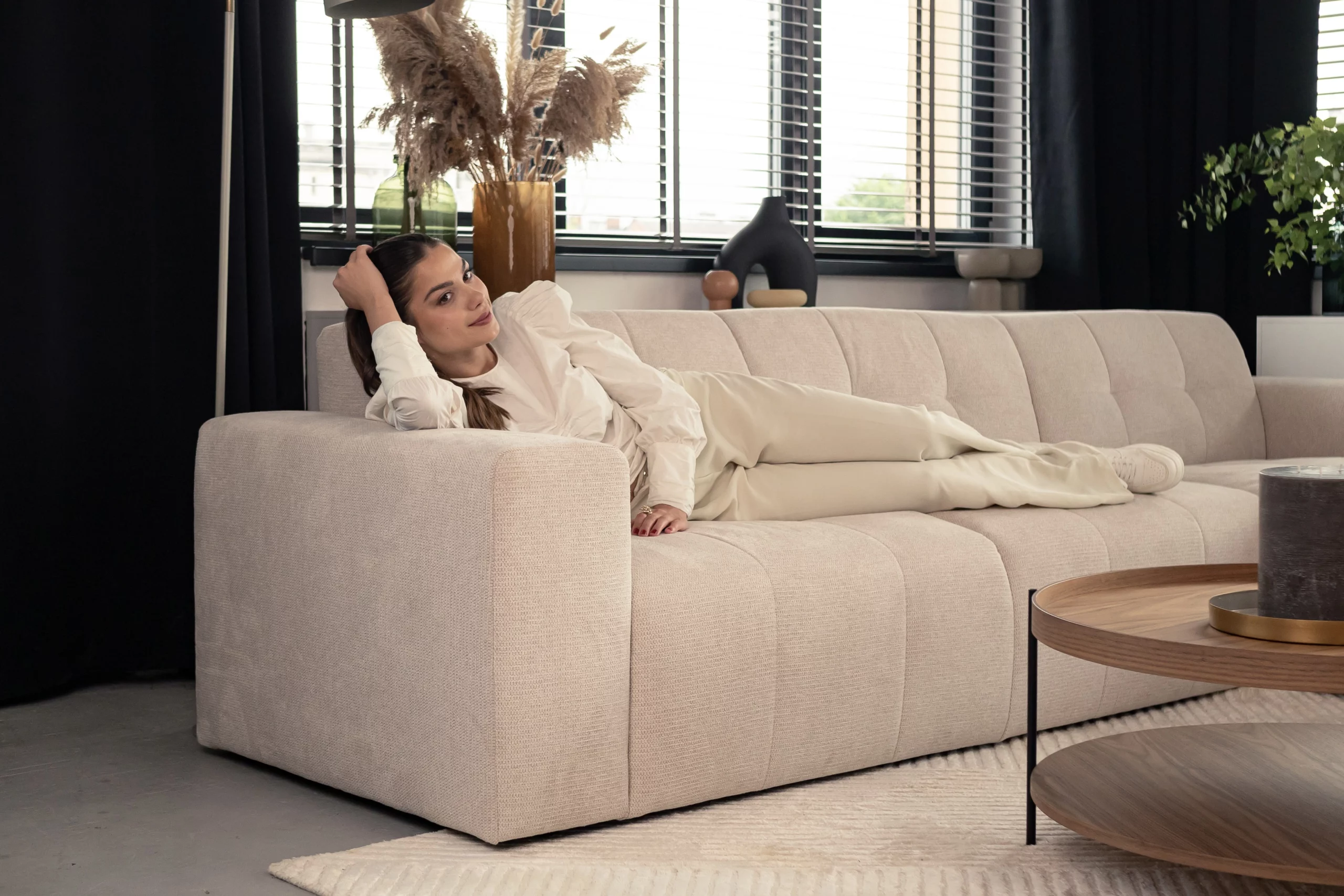 Vintage et cosy, le canapé d’angle moelleux en tissu déperlant et anti-tâches Verde est sublime et imposant ! Une méridienne assez large qui permet de toujours se relaxer sans manquer de place !