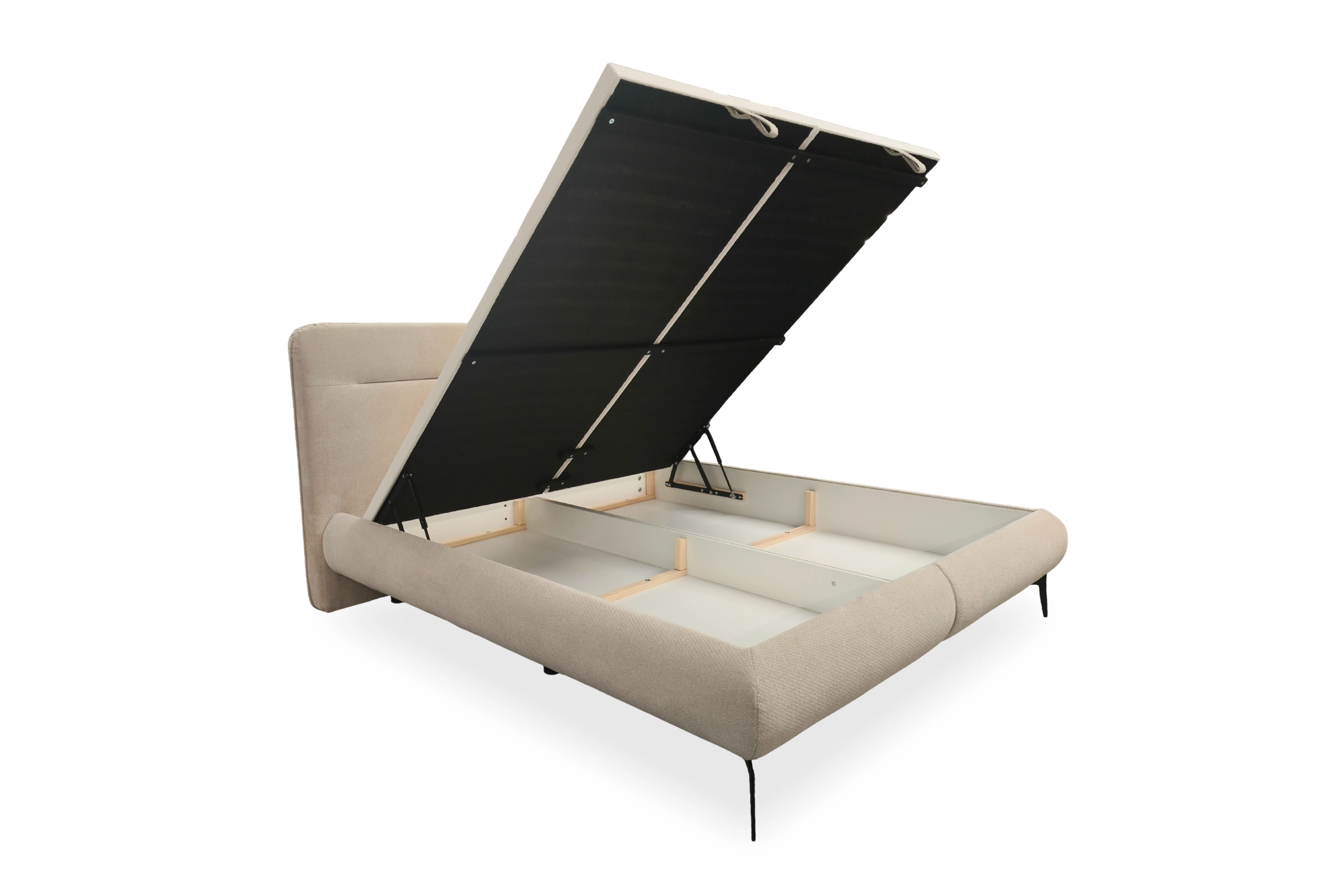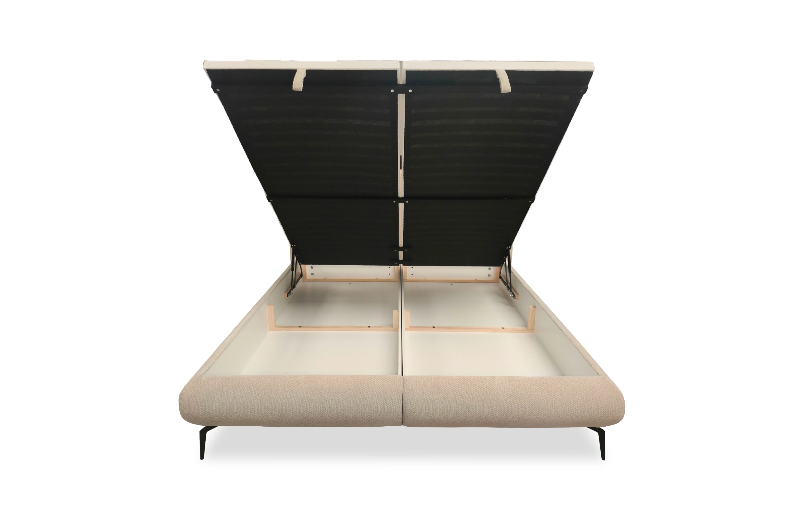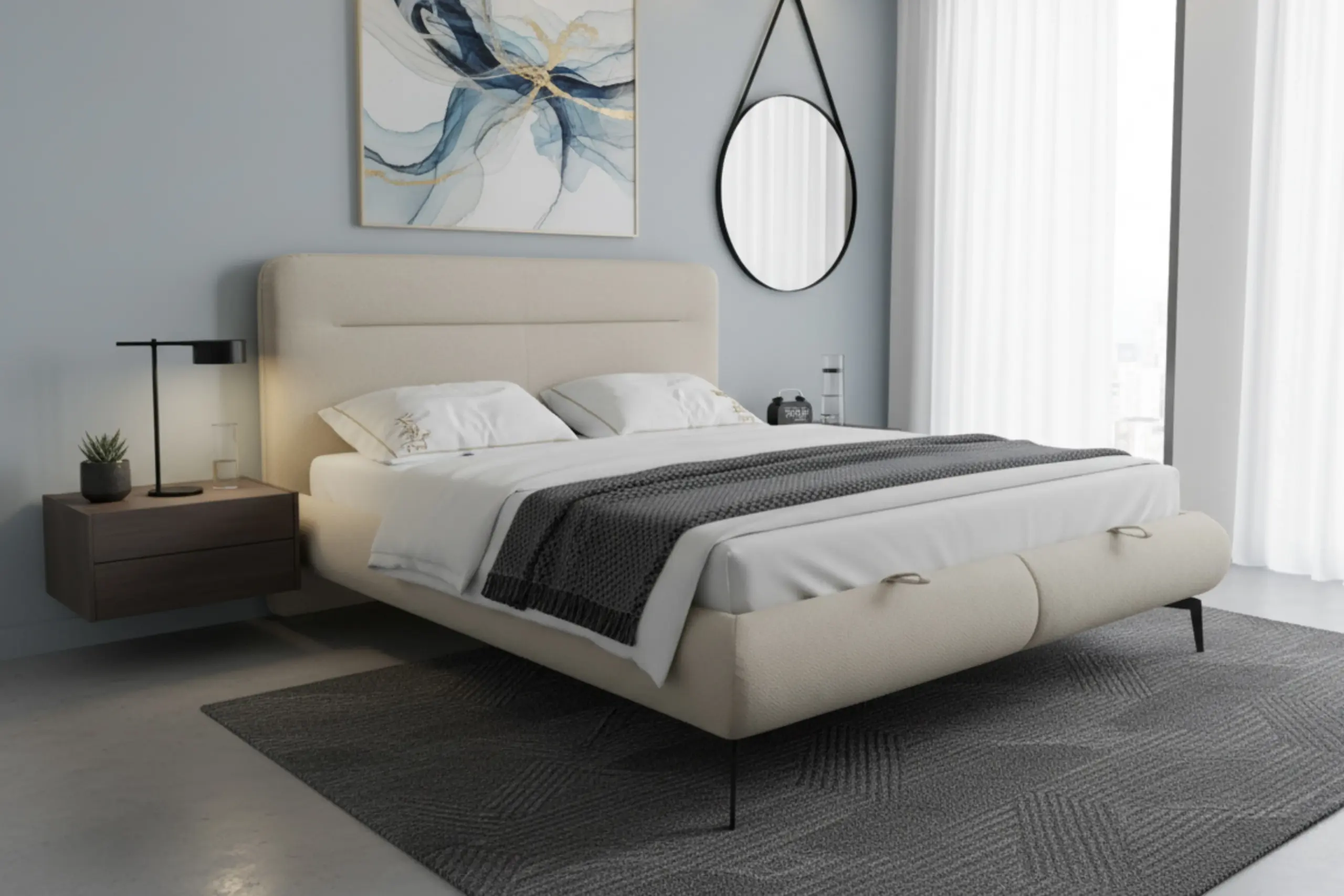 Le lit EMILIA ne se contente pas d’être beau : il est aussi ultra-pratique. Sous le sommier, un espace de rangement généreux permet d’entreposer couettes, oreillers, linge de lit ou vêtements de saison. L’ouverture est assistée par de vérins à gaz, garantissant une manipulation fluide et sans effort.