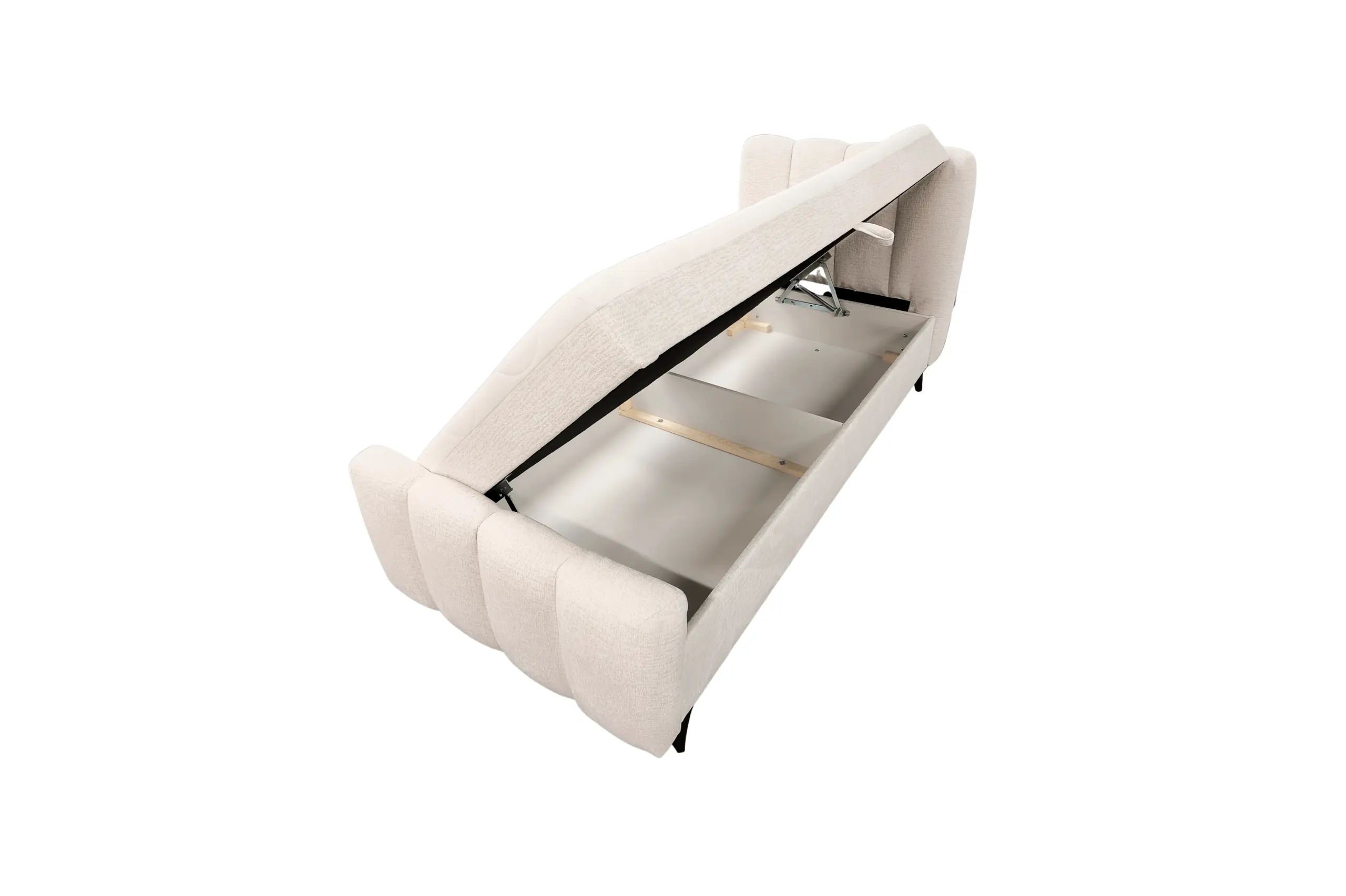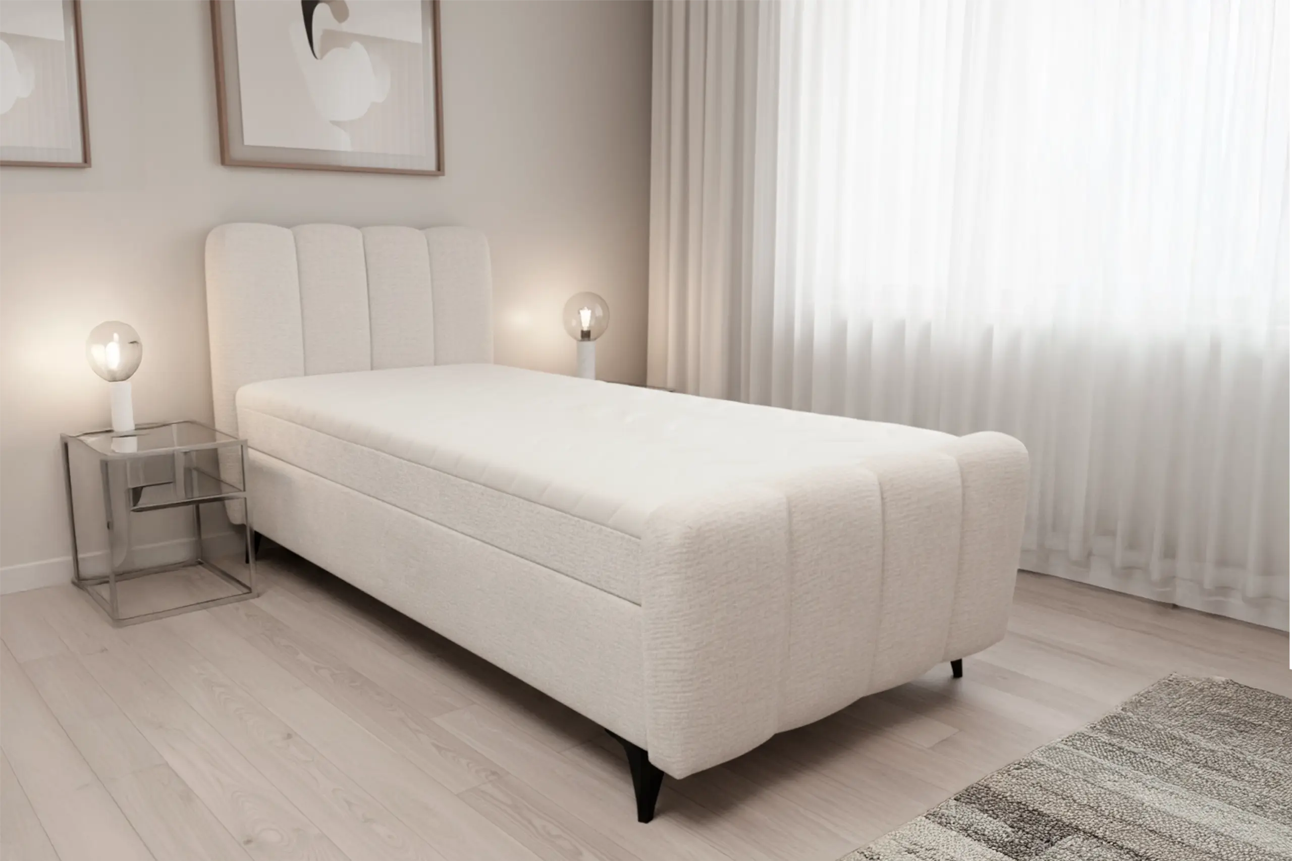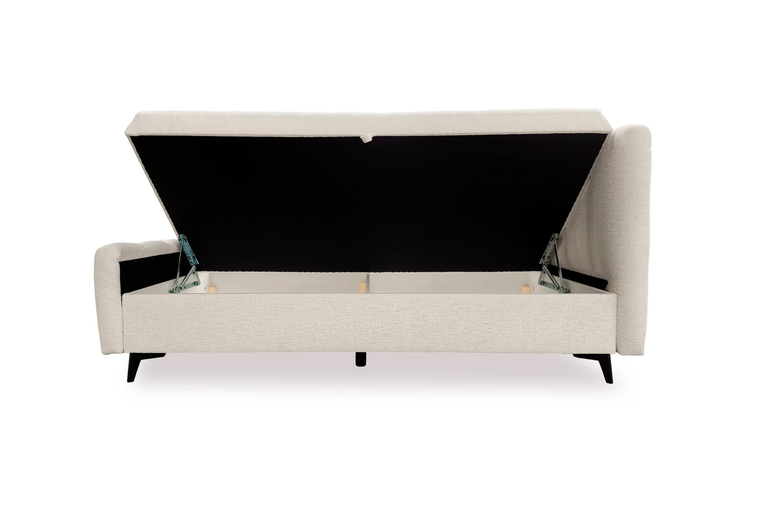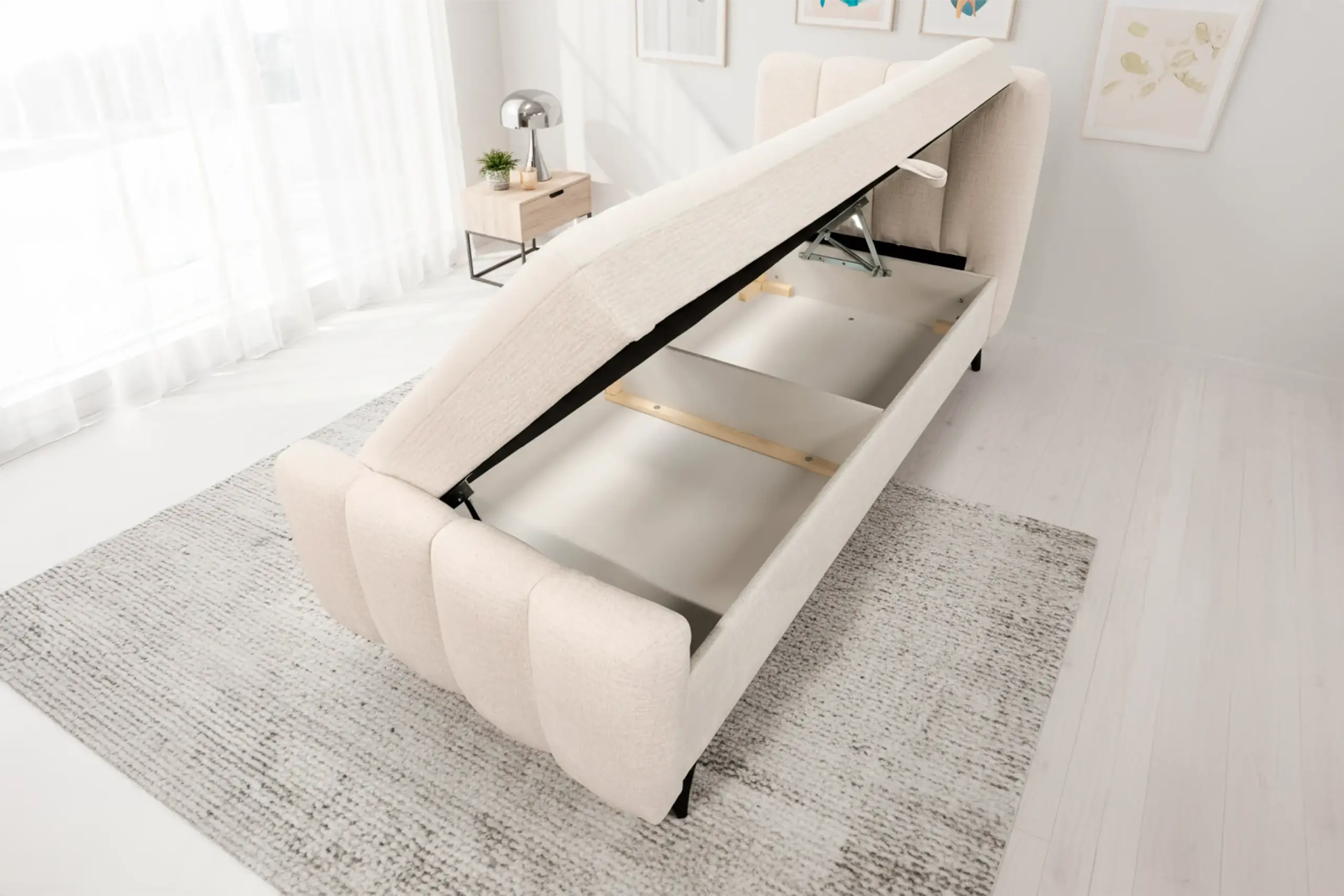 Lit coffre design en tissu écru Fanon (avec matelas intégré)