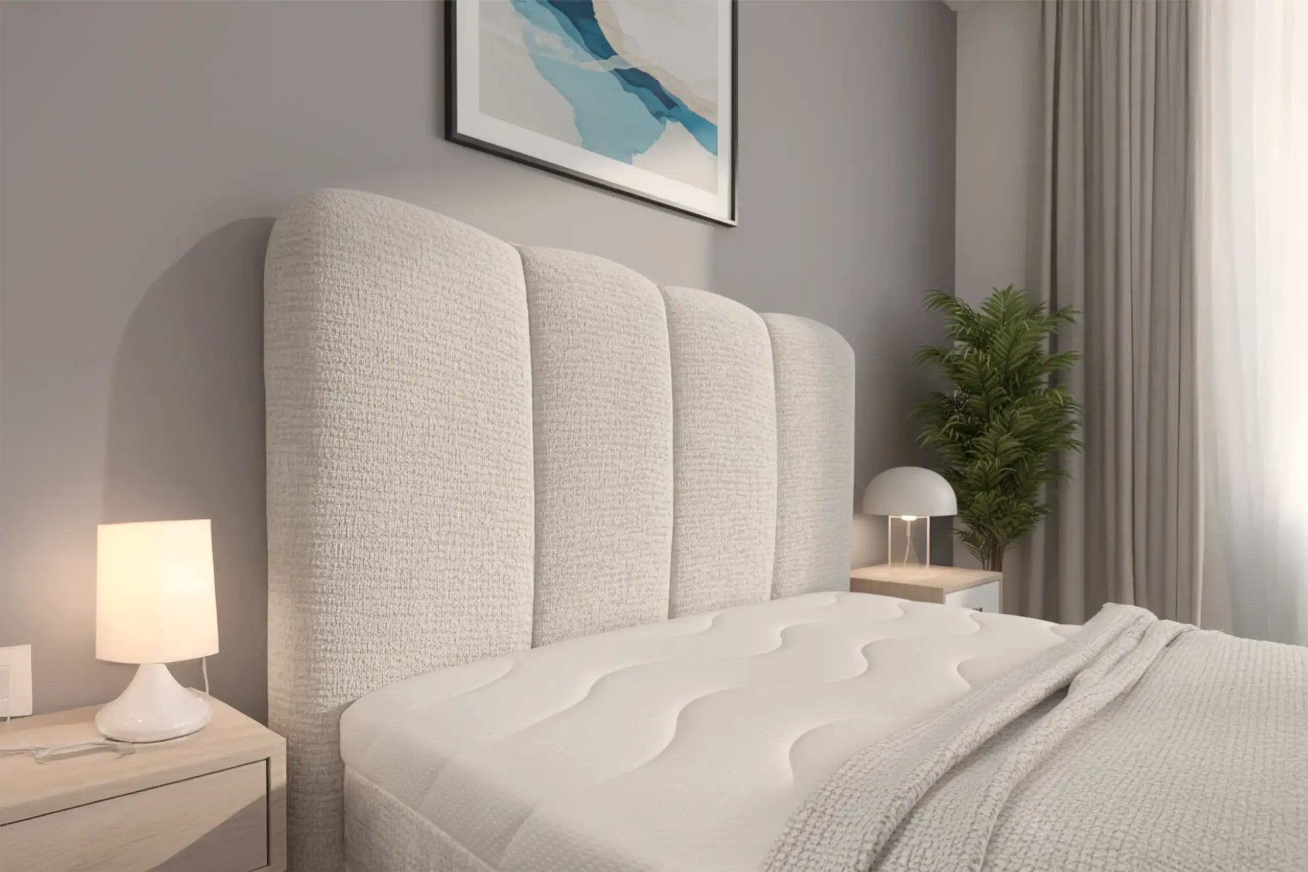 Son design moderne et sa tête de lit capitonnée lui donnent une allure élégante, tandis que son tissu doux et agréable au toucher invite à la détente.