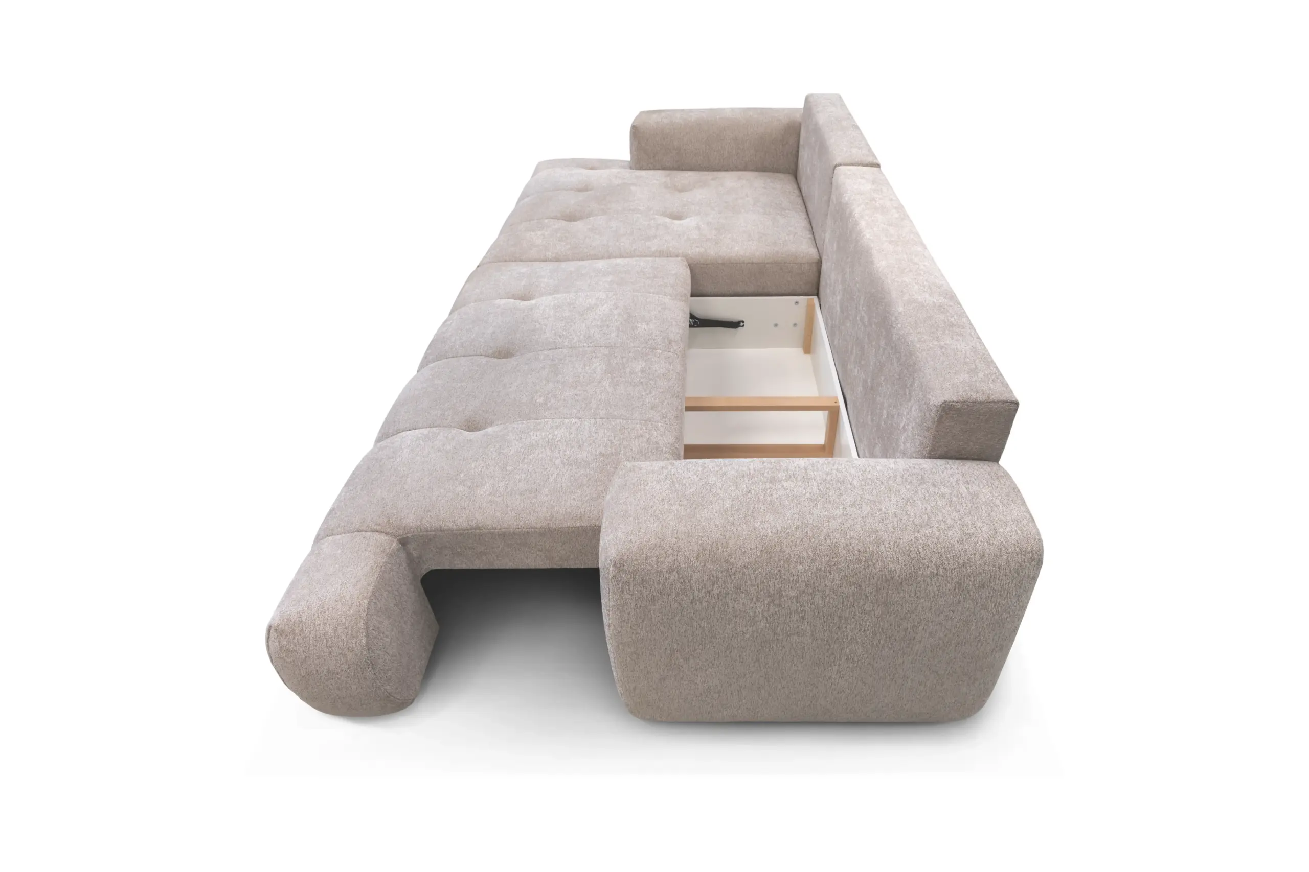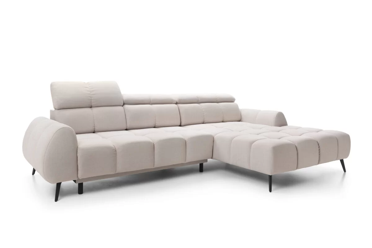 Canapé moderne capitonné avec couchage et coffre avec angle gauche ou droit*