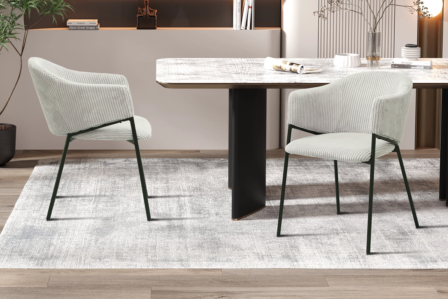 Avec son design structuré et ses lignes épurées, la chaise Hugo est l’alliance parfaite entre confort et modernité. Son revêtement en velours côtelé clair apporte une touche de douceur, tandis que sa structure fine en métal noir assure stabilité et légèreté visuelle. Une chaise idéale pour sublimer une salle à manger, un bureau ou une pièce à vivre.