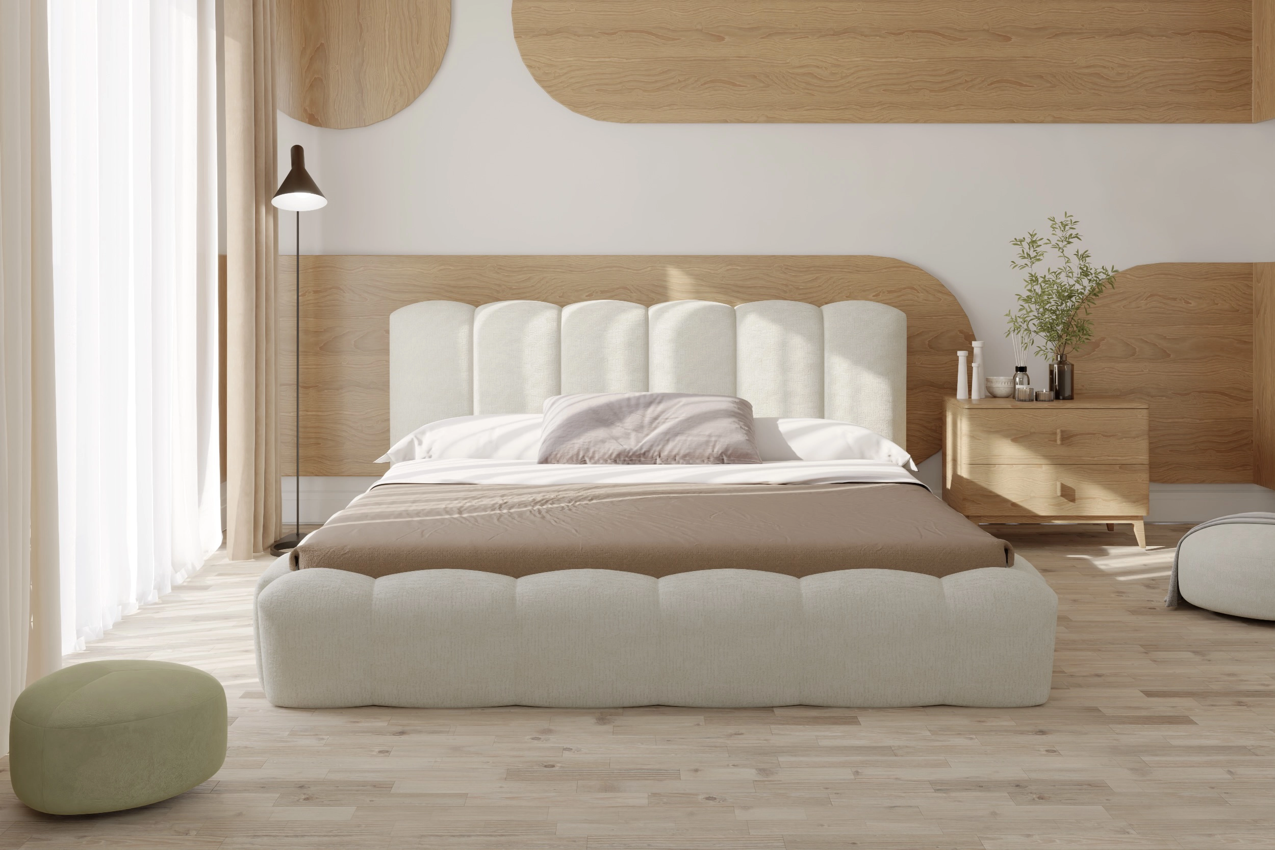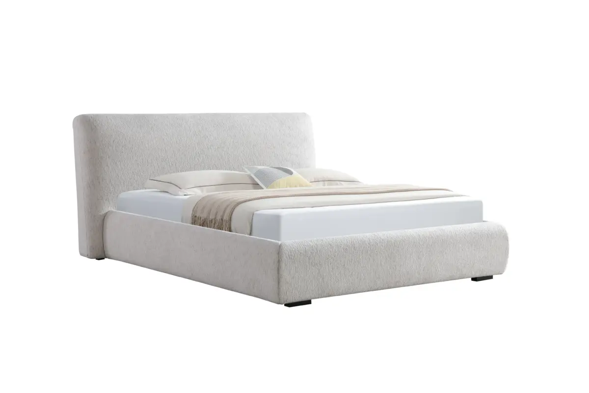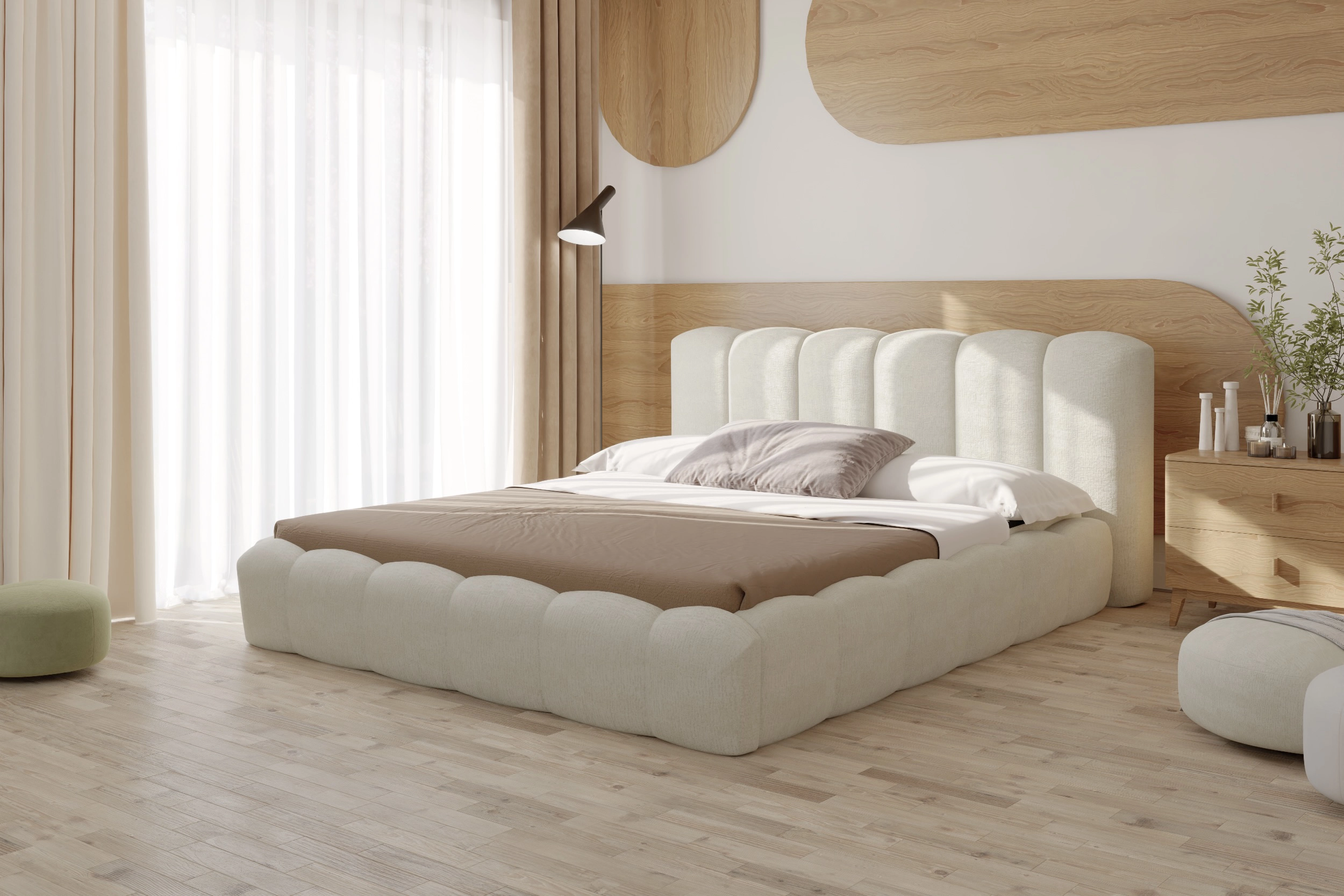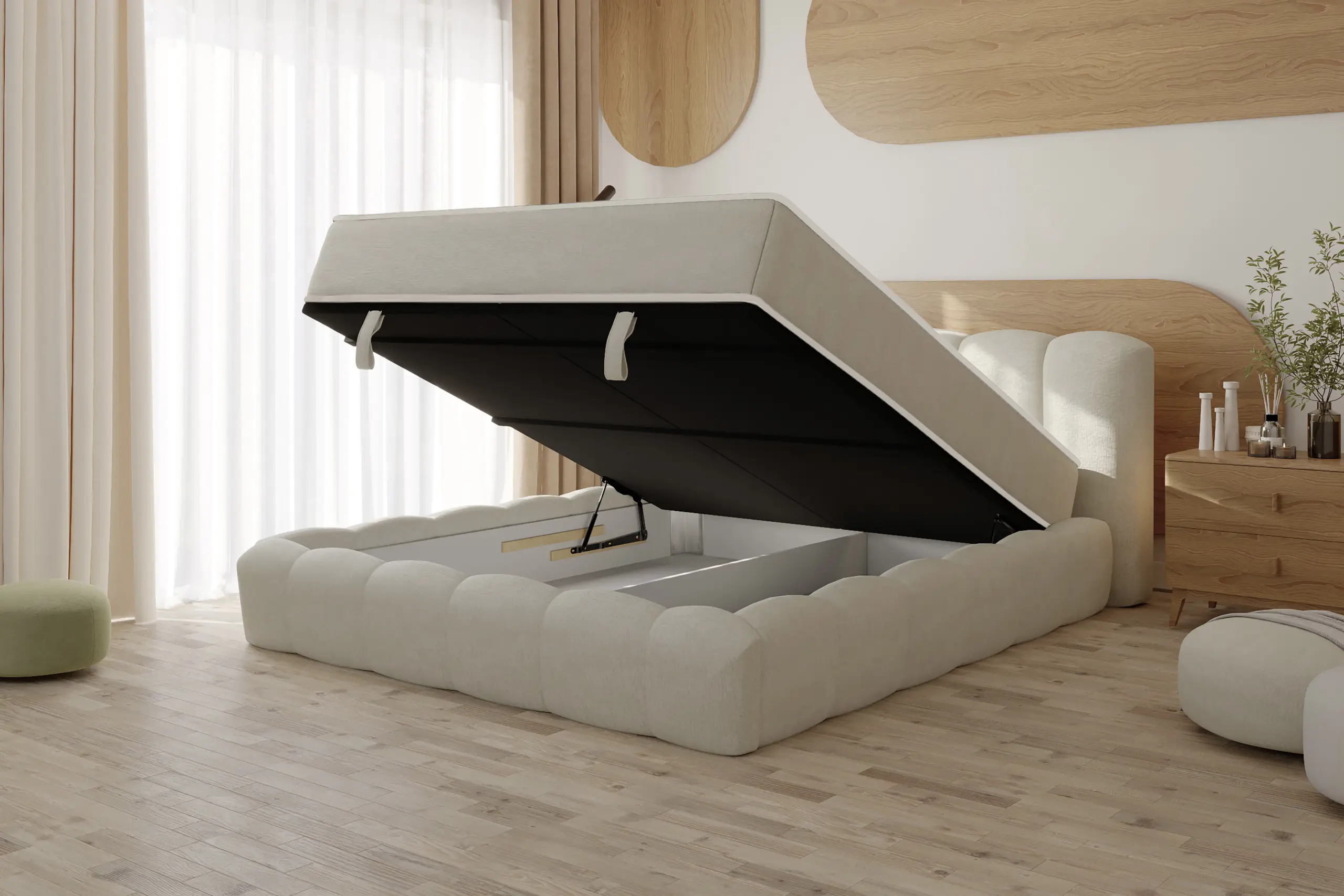 Lit coffre design en tissu écru Julia (avec matelas Moonlight 30 cm ou sans matelas)