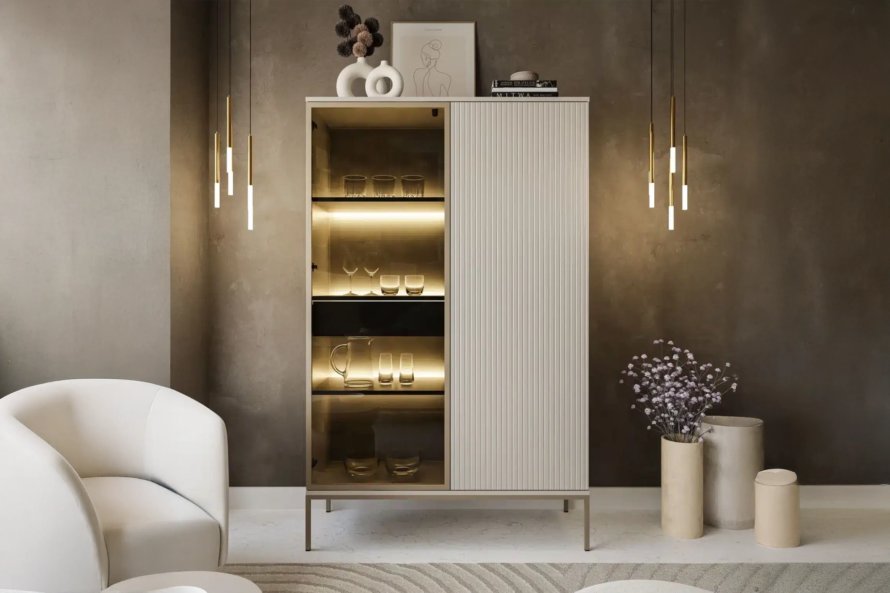 Apportez style et confort à votre intérieur avec la vitrine SENTO, le choix idéal pour sublimer votre salon.
