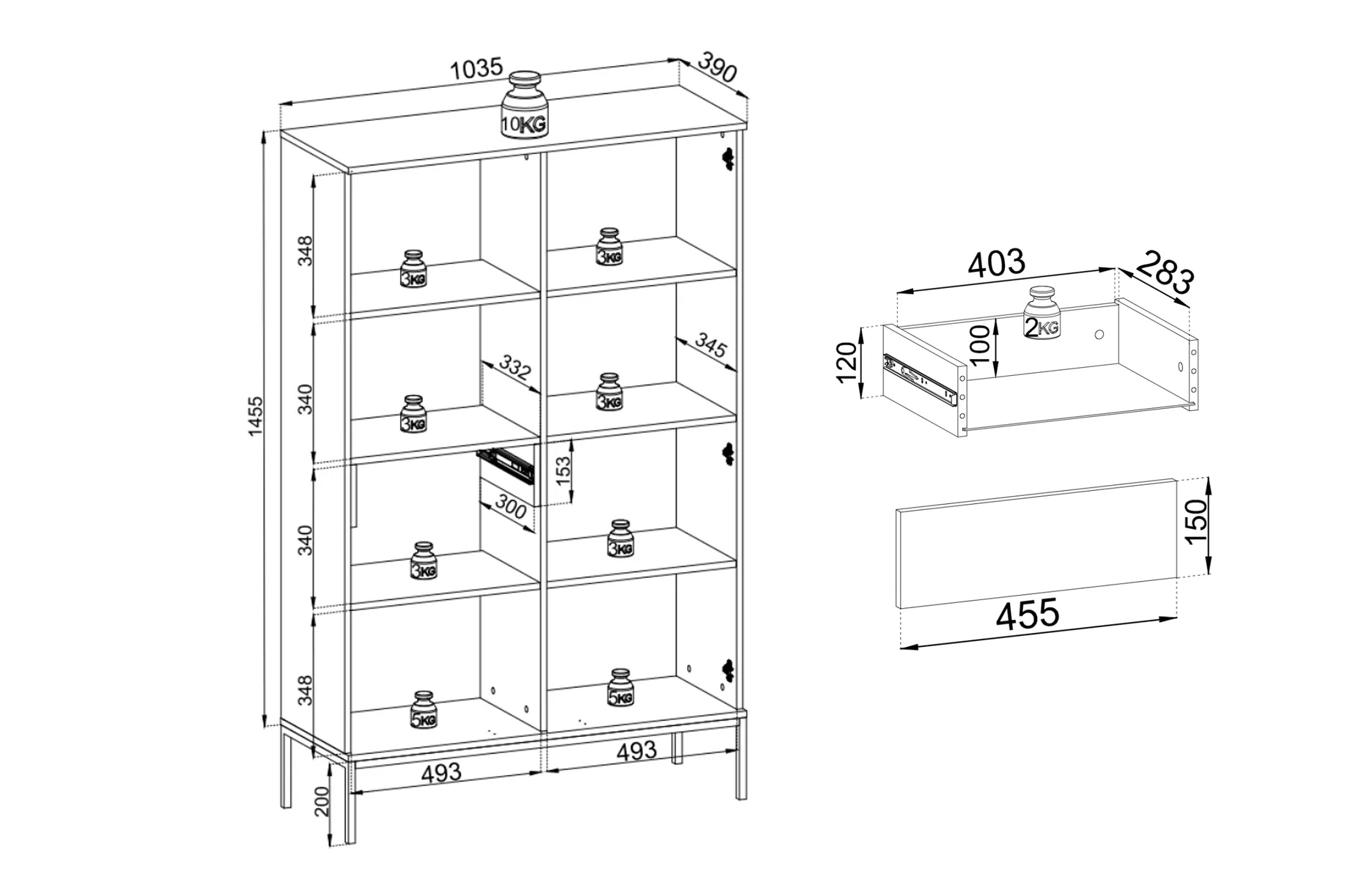 - Dimensions : 104L x 166H x 39P cm