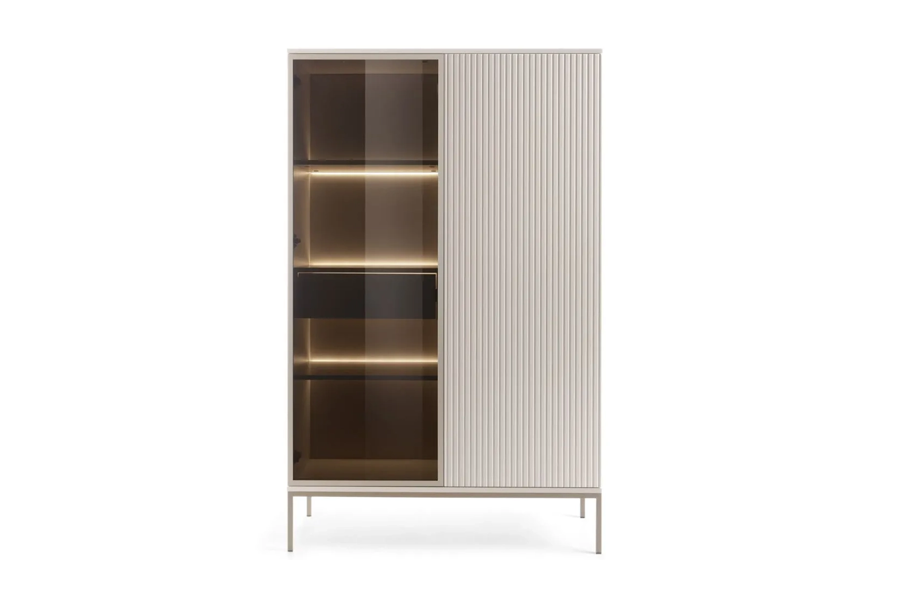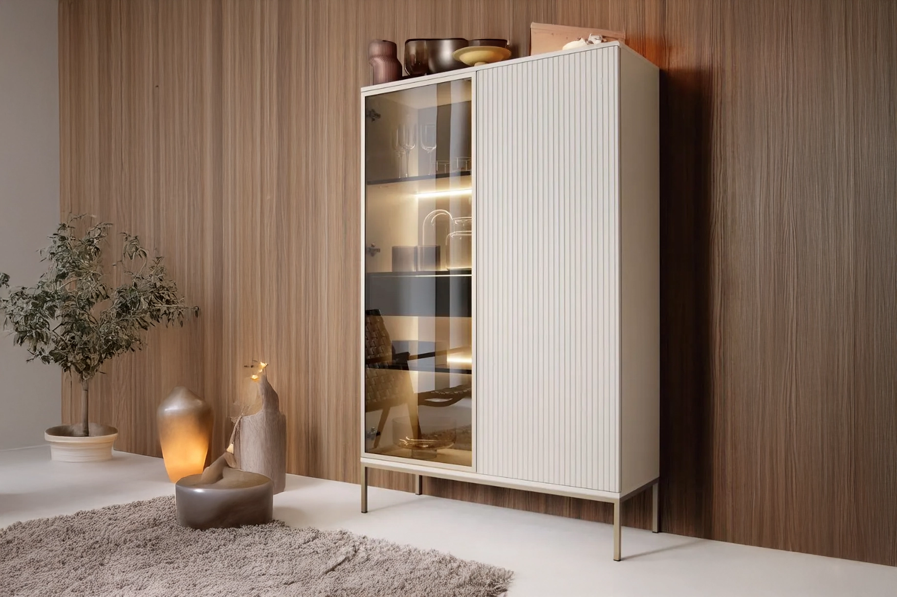 Plébiscité en finition effet chêne, la vitrine SENTO est désormais disponible en coloris cachemire, élégant et tendance.