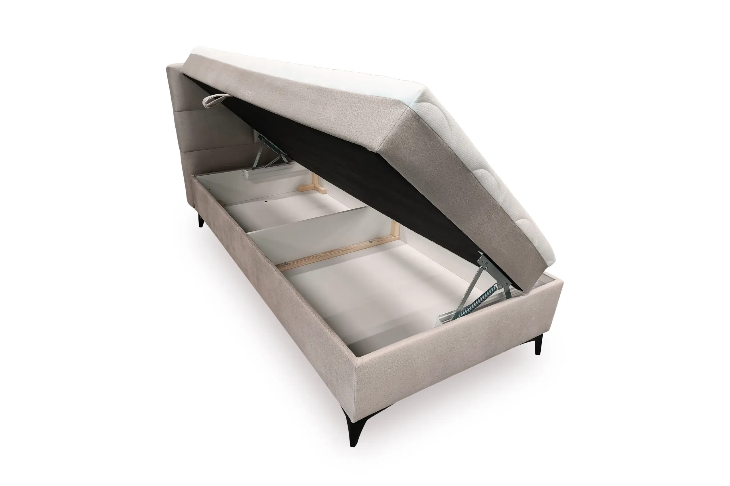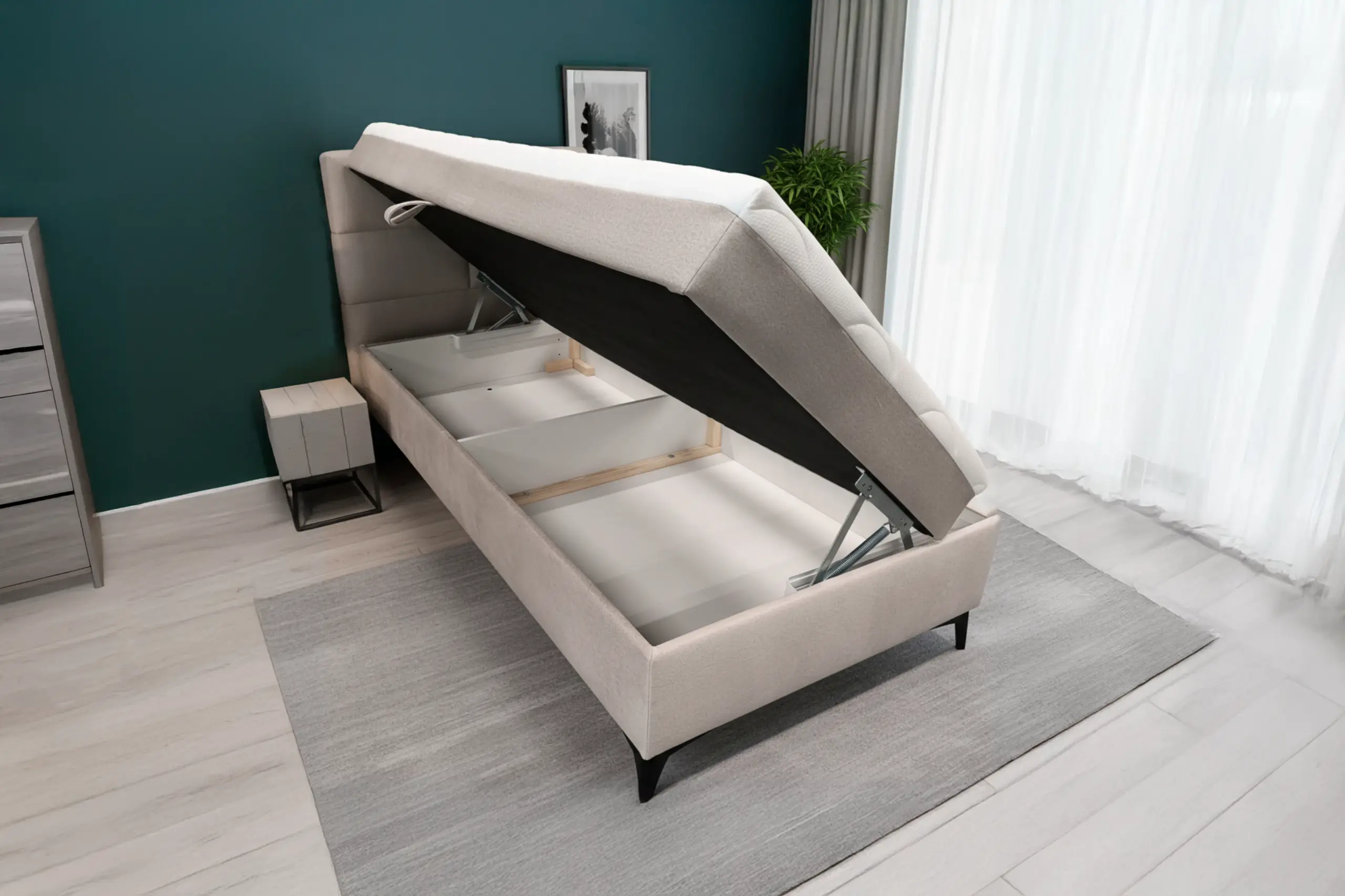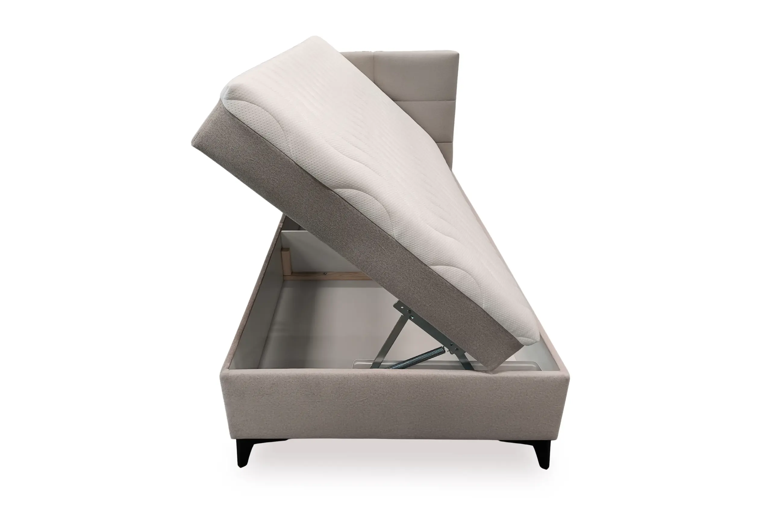 Lit coffre moderne en tissu beige déperlant + matelas intégré  – 90×190 cm