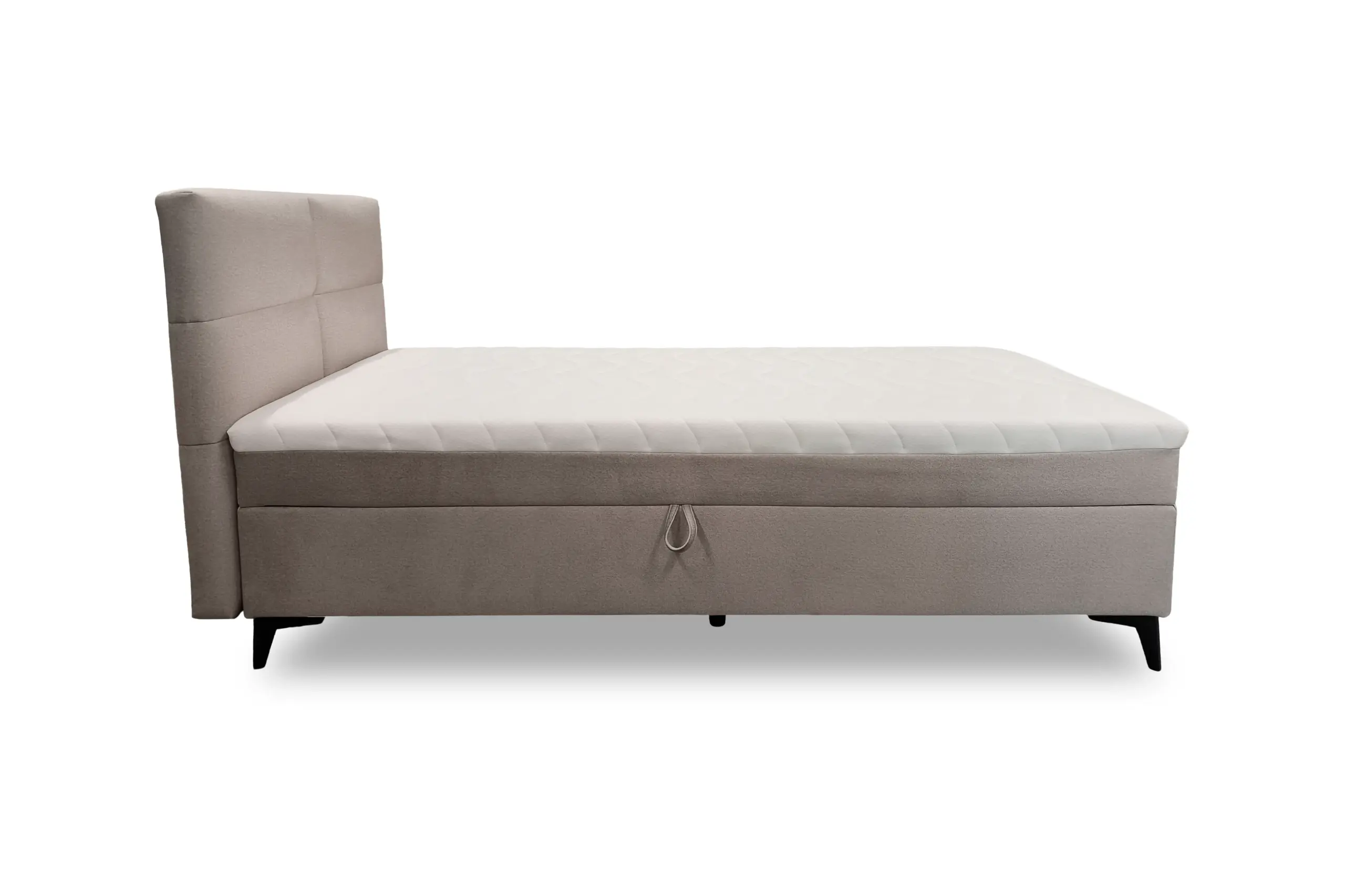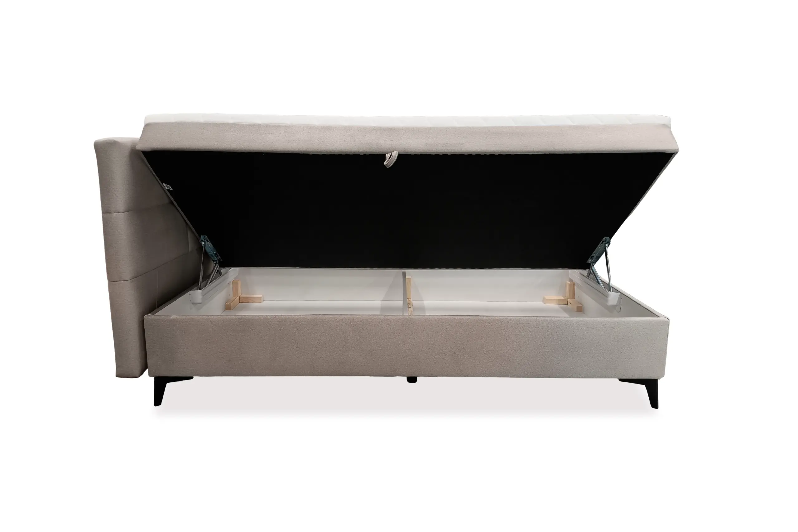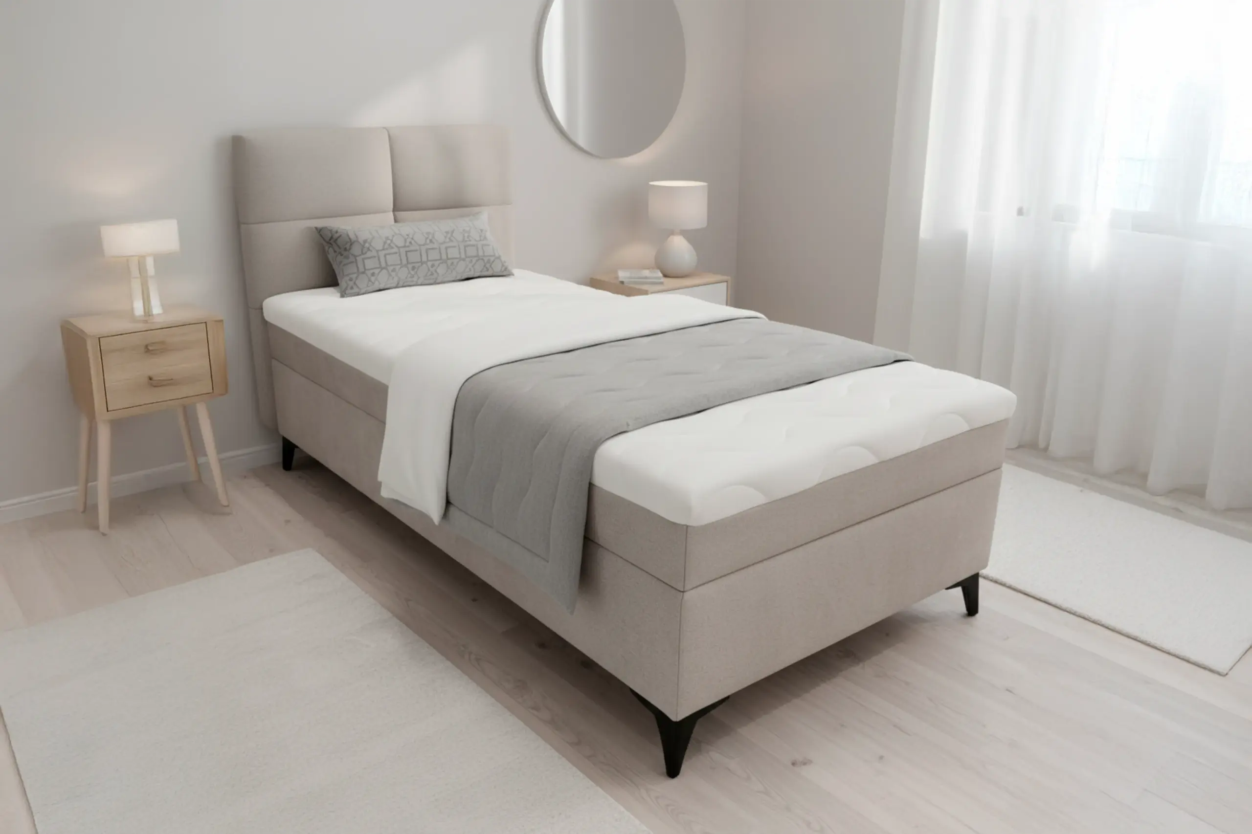 Lit coffre moderne en tissu beige déperlant + matelas intégré  – 90×190 cm
