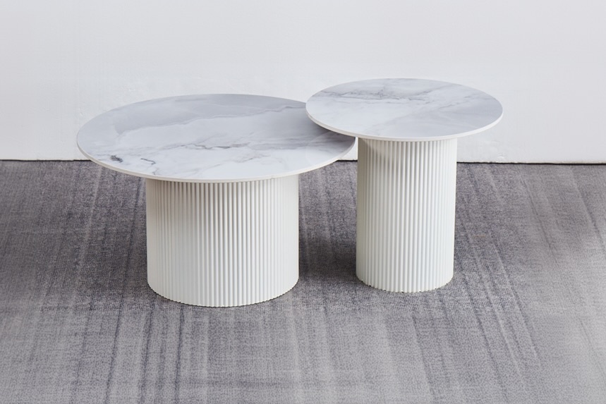 Cet ensemble de deux tables gigognes rondes Polpo avec des plateaux en céramique en imitation marbre blanc et gris seront parfaites pour votre futur salon ! L’ensemble donne une impression de modernité et d’élégance, idéal pour un intérieur contemporain.